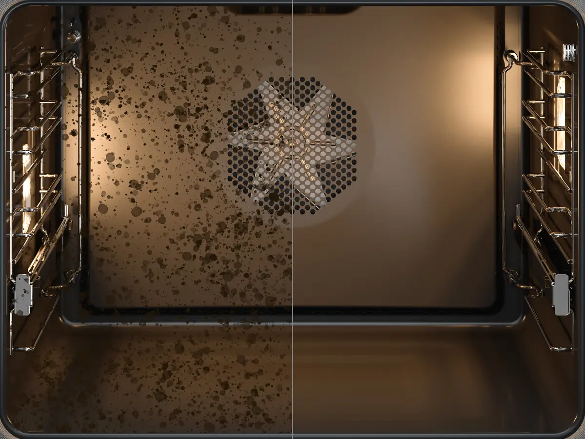 Twój piekarnik wymaga regularnego czyszczenia. Dzięki funkcji czyszczenia pirolitycznego piekarnik osiąga prawie 500°C, zwęglając tłuszcz i pozostałości w popiół, który można łatwo zetrzeć. Ponadto blachy do pieczenia można również czyścić pyrolitycznie, co czyni czyszczenie jeszcze wygodniejsze.