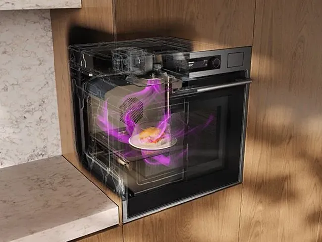 Nowoczesne piekarniki z funkcją mikrofalówki zostały wyposażone w zaawansowany wentylator Microwave Stirer, który umożliwia równomierne rozprowadzanie fal w piekarniku. Dzięki temu nie jest potrzebny obrotowy talerz, a za to możesz podgrzać większą ilość jedzenia.