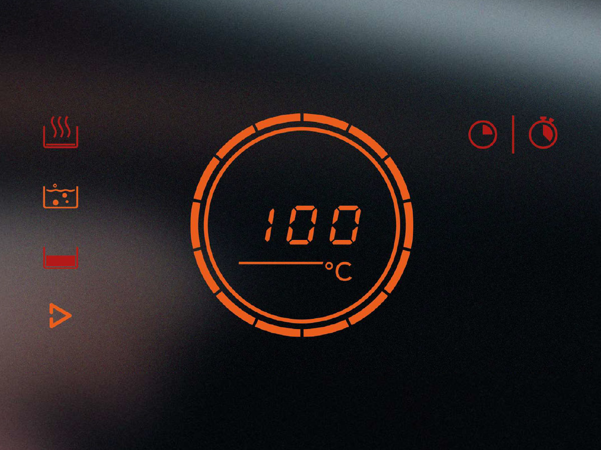 Wyświetlacz z dotykowym pokrętłem na płycie pokazuje poziom mocy, zarówno w formie graficznej, jak i numerycznej. Możesz zobaczyć na grafice z jaką mocą gotujesz, lub posłużyć się liczbą wskazującą poziom mocy lub wysokość temperatury.