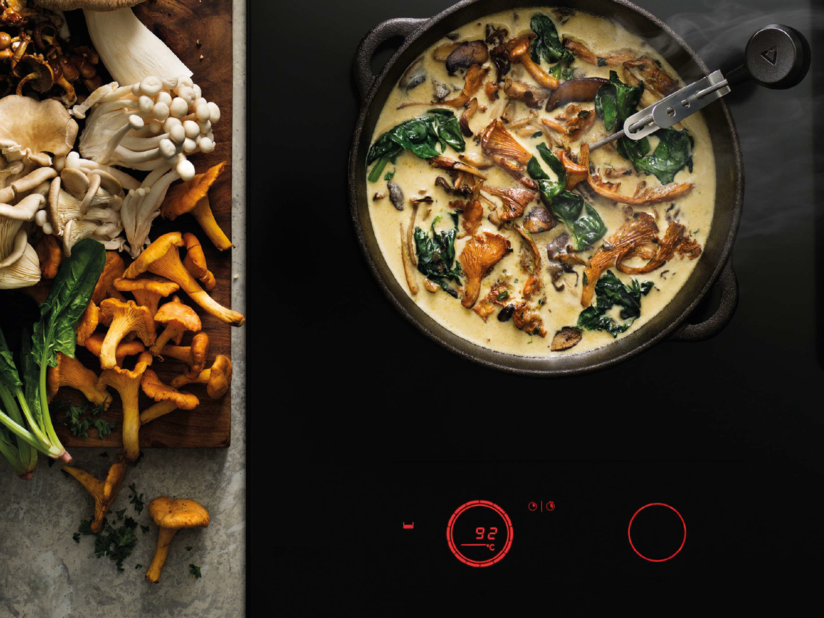 Ponieważ płyta indukcyjna nagrzewa się tylko pod patelnią, a regulacja temperatury następuje natychmiast, niebezpieczeństwo zagotowania lub rozlania potrawy jest minimalne. Płyty indukcyjne ASKO są również odporne na rozlane płyny i bardzo łatwe w czyszczeniu, ponieważ potrawy nie przywierają do powierzchni. Wystarczy je tylko wytrzeć.