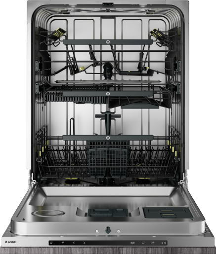 W panelu obsługi zmywarek ASKO wykorzystano prosty i intuicyjny sposób sterowania urządzeniem. Panel obsługuje się od lewej do prawej strony, co jest bardzo wygodne i niweluje problem wciskania przypadkowych guzików. Zmywarki ASKO mają skuteczne programy mycia, które z łatwością dostosujesz do poziomu zabrudzenia naczyń. Wysoki poziom bezpieczeństwa sprawia, że nie musisz martwić się o przypadkowe zalanie, nawet jeżeli akurat przebywasz poza domem.