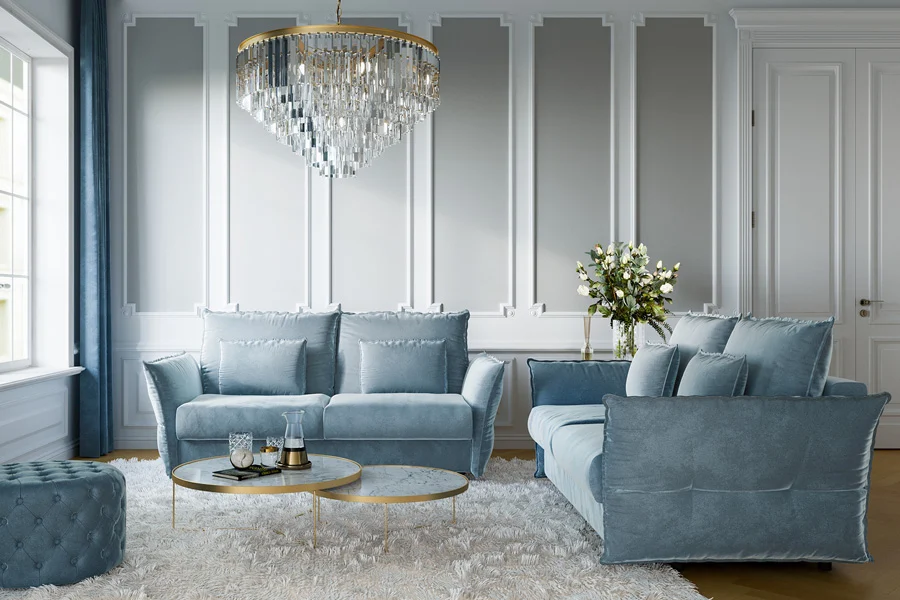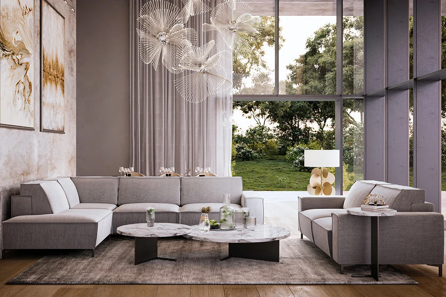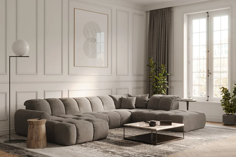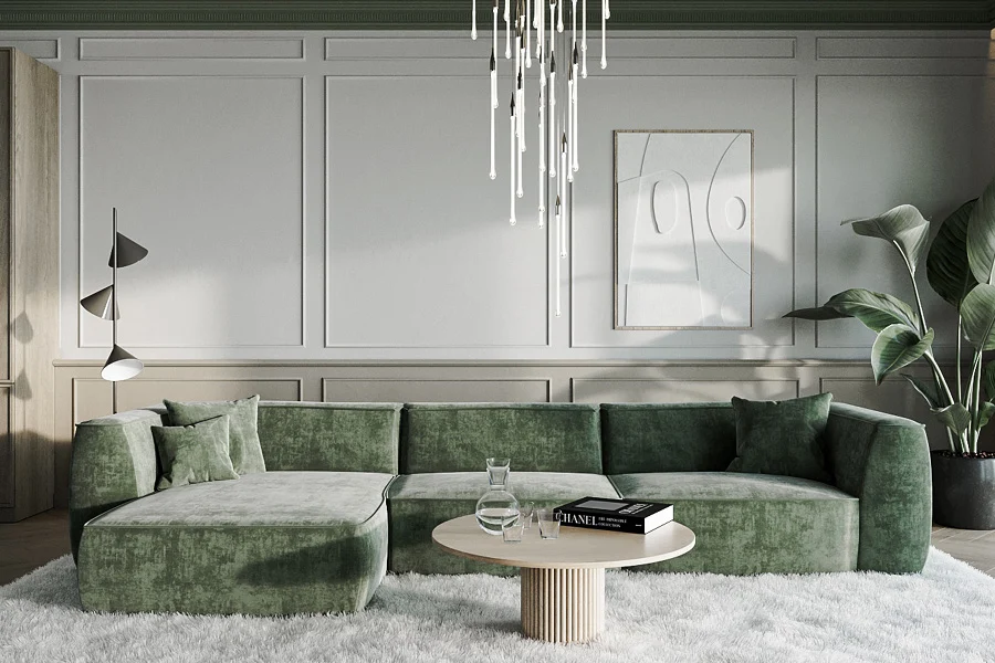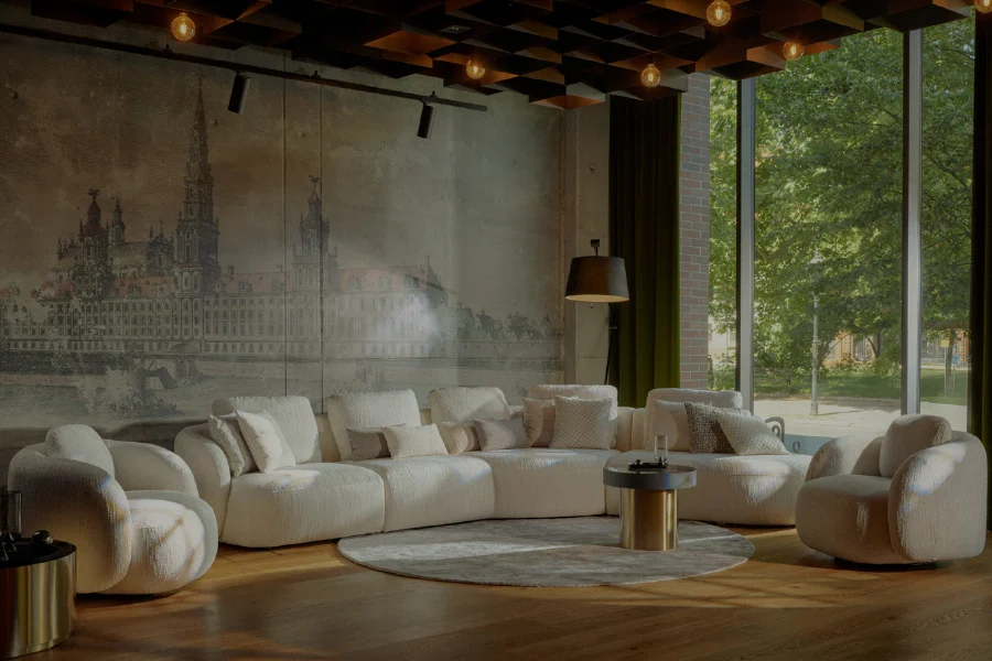 Belavio to mebel, który z pełną świadomością celebruje dekoracyjność. Kolekcja bogata w detale: głęboko pikowane siedziska, obszerne poduszki, mocna kedra, charakterystyczne metalowe nóżki. W jego sylwetce odnaleźć można dyskretne odniesienia do włoskiego renesansu, jednak w duchu współczesnego podejścia do klasyki – pozbawionego patosu, ale pełnego wyrafinowania.