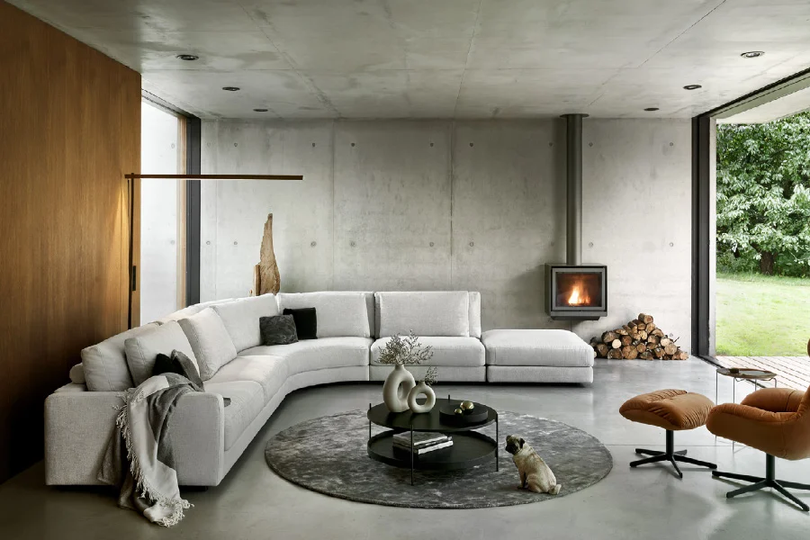 Corrado to modułowa kolekcja, która łączy prostą, uporządkowaną formę z wygodą codziennego użytkowania. Jego wyraźnie zaznaczone linie podkreślają stabilność, a szerokie podłokietniki dodają całości nowoczesnego charakteru. Zastosowana lamówka, nadaje całości nieco swobodniejszego, mniej formalnego wyglądu. Proste, metalowe nogi są solidne i dobrze podtrzymują bryłę, a jednocześnie nie dominują wizualnie. Corrado jest dostępny w różnych konfiguracjach — od klasycznych sof, po większe narożniki i układy z szezlongiem.