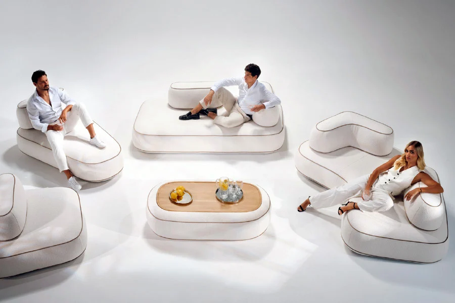 Domani to modułowa kompozycja o miękkim, organicznym charakterze i otulającej formie. Wszystkie krawędzie są zaokrąglone, bryły płynnie przechodzą jedna w drugą, a boki otulają, nadając całości rzeźbiarskiego sznytu. Możesz tworzyć klasyczne narożniki, falujące linie, układy w kształcie łuku albo pełne, zamknięte konfiguracje do przestrzeni otwartych. Szeroka gama modułów pozwoli Ci skomponować niemal każdy układ przestrzenny. Kolekcja została wzbogacona również o sofę z funkcją spania oraz wygodne łóżko, wciąż wierne pierwotnej linii i charakterystycznemu stylowi hiszpańskiego projektanta Enrique Marti.