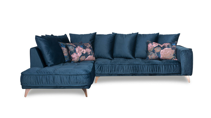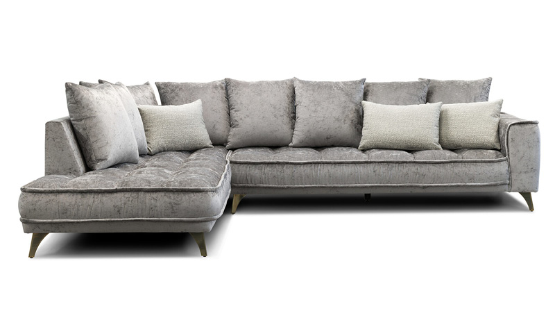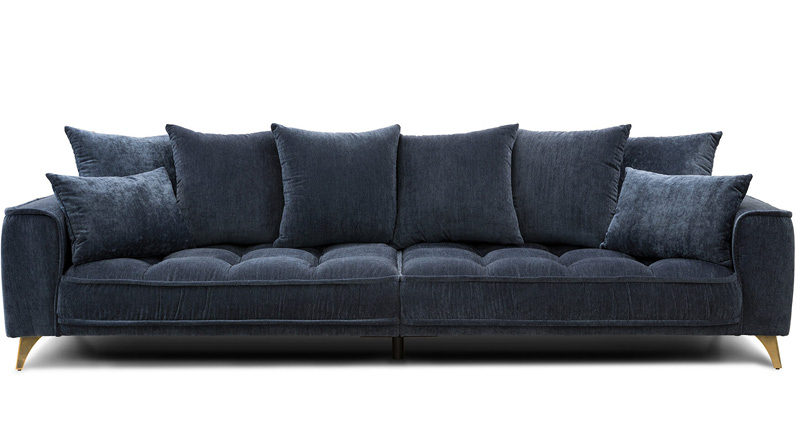Belavio to mebel, który z pełną świadomością celebruje dekoracyjność. Kolekcja bogata w detale: głęboko pikowane siedziska, obszerne poduszki, mocna kedra, charakterystyczne metalowe nóżki. W jego sylwetce odnaleźć można dyskretne odniesienia do włoskiego renesansu, jednak w duchu współczesnego podejścia do klasyki – pozbawionego patosu, ale pełnego wyrafinowania.