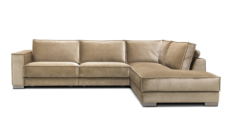 Corrado to modułowa kolekcja, która łączy prostą, uporządkowaną formę z wygodą codziennego użytkowania. Jego wyraźnie zaznaczone linie podkreślają stabilność, a szerokie podłokietniki dodają całości nowoczesnego charakteru. Zastosowana lamówka, nadaje całości nieco swobodniejszego, mniej formalnego wyglądu. Proste, metalowe nogi są solidne i dobrze podtrzymują bryłę, a jednocześnie nie dominują wizualnie. Corrado jest dostępny w różnych konfiguracjach — od klasycznych sof, po większe narożniki i układy z szezlongiem.