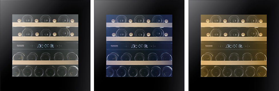 Chłodziarki do wina DUNAVOX w zależności od konkretnego modelu wyposażone są w oświetlenie wnętrza w kolorze białym, niebieskim lub bursztynowym. Niektóre z nich posiadają funkcję MultiLED, która daje użytkownikowi możliwość własnego wyboru koloru oświetlenia (jednego z 3 wymienionych wcześniej) w zależności od indywidualnych upodobań.