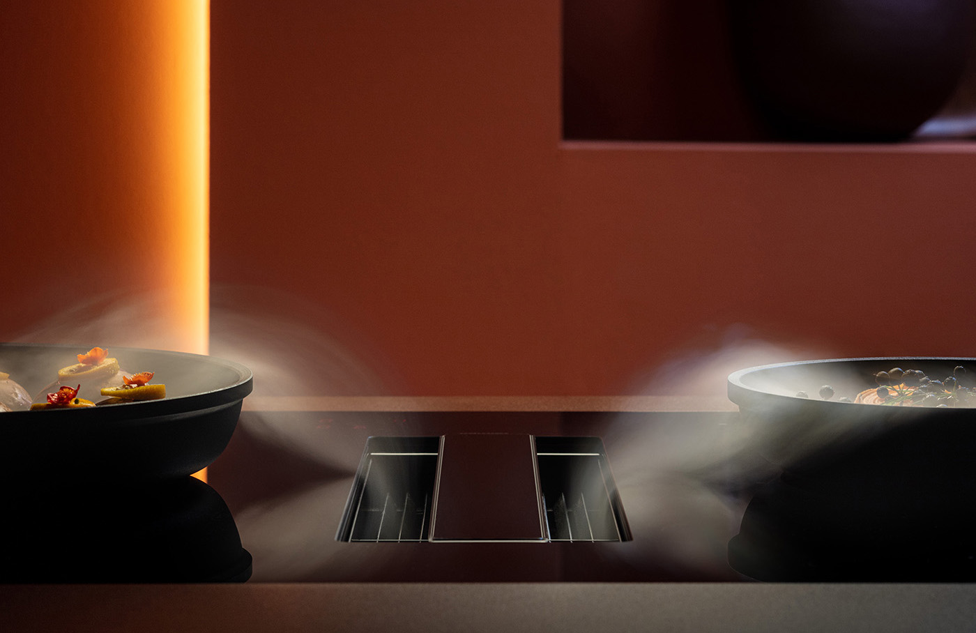 Gama rozwiązań i produktów Falmec zaprojektowanych w celu zwiększenia doznań związanych z gotowaniem i przebywaniem razem w kuchni.