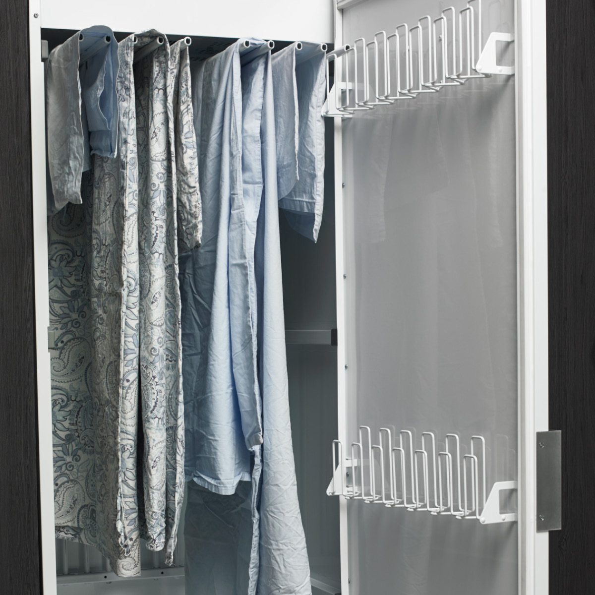 Nasze szafy suszące są bardzo pojemne i mają wystarczająco dużo miejsca, aby pomieścić odpowiednik 16-metrowego sznura na ubrania. Wnętrze jest elastyczne, a inteligentna konstrukcja sprawia, że można je bardzo łatwo dostosować i zorganizować do różnych rodzajów prania. Gwarantuje to, że zawsze osiągniesz maksymalny efekt suszenia.
