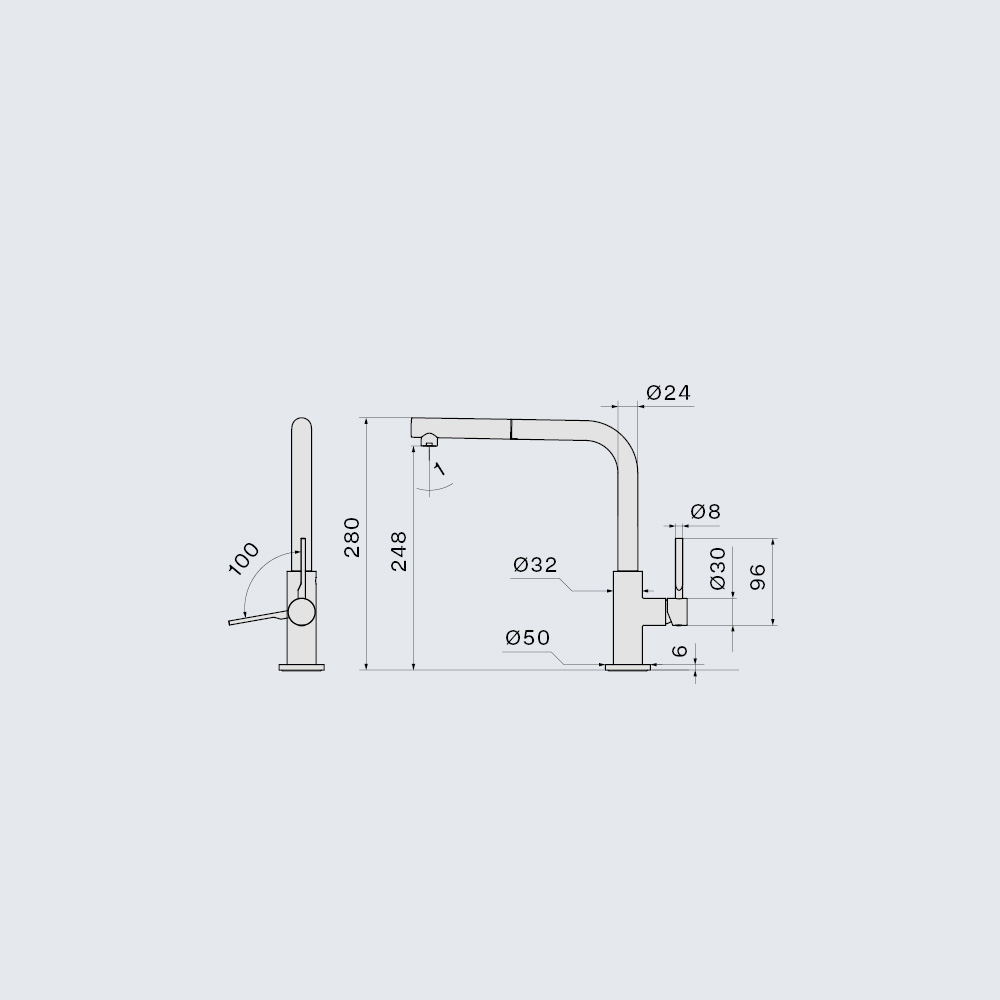 Bateria kuchenna w kolorze miedzianym z wyciąganą wylewką.