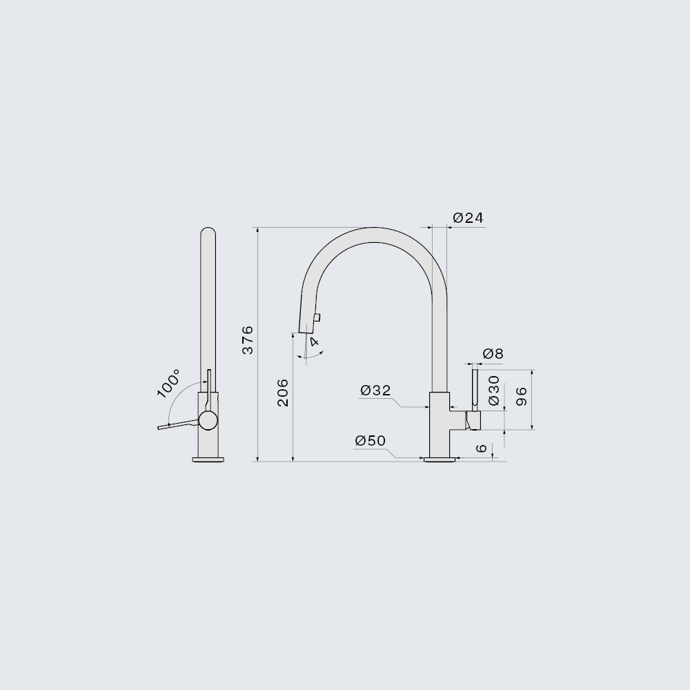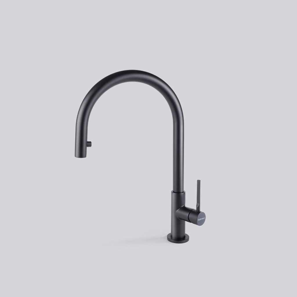 Bateria kuchenna w kolorze czarny mat z wyciąganą wylewką.