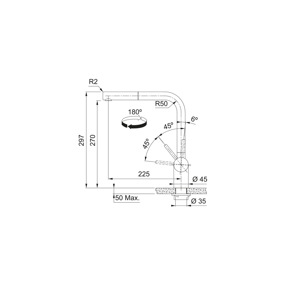 - Zakres obrotu wylewki: 180°