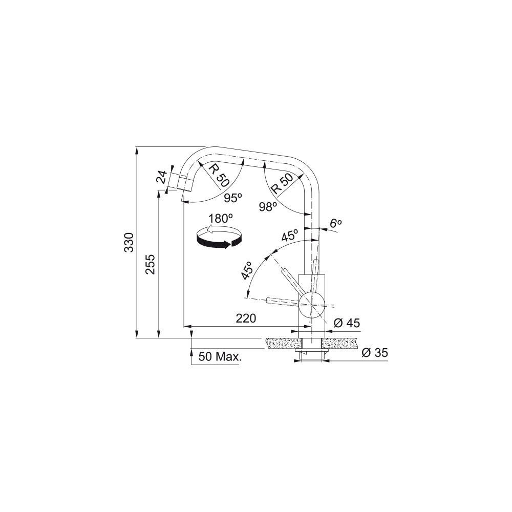 - Zakres obrotu wylewki: 180°