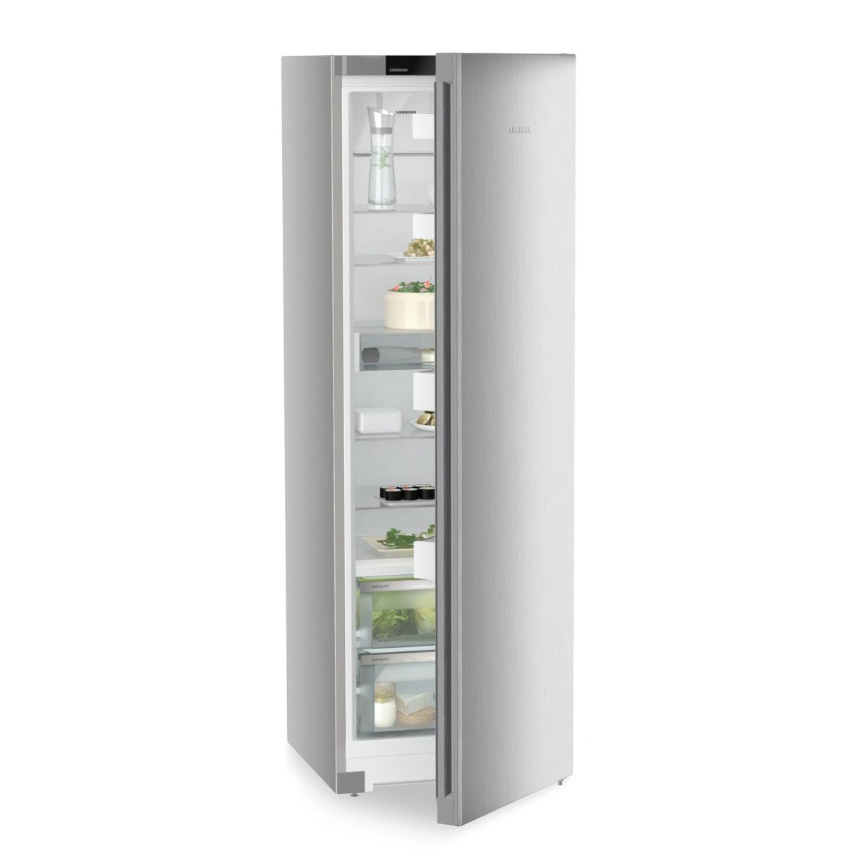 Przejrzysta, jasna i atrakcyjna – takie wrażenie sprawia lodówka Liebherr przy każdym otwarciu drzwi. To zasługa między innymi przezroczystych półek szklanych z bezpiecznego szkła. Można szybko i łatwo zmienić ich wysokość jednym ruchem ręki. Ozdobne listwy ze stali szlachetnej stanowią uzupełnienie atrakcyjnego wyglądu.