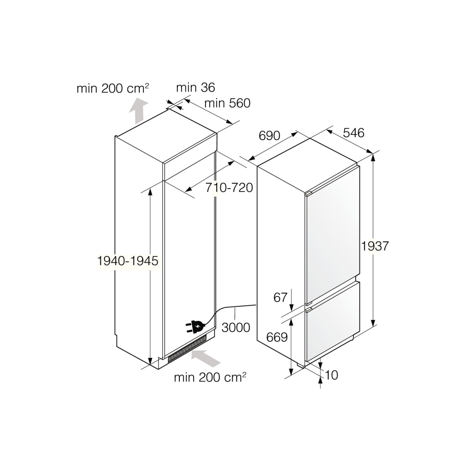 - Grupa produktów: Chłodziarko-zamrażarka do zabudowy zintegrowanej