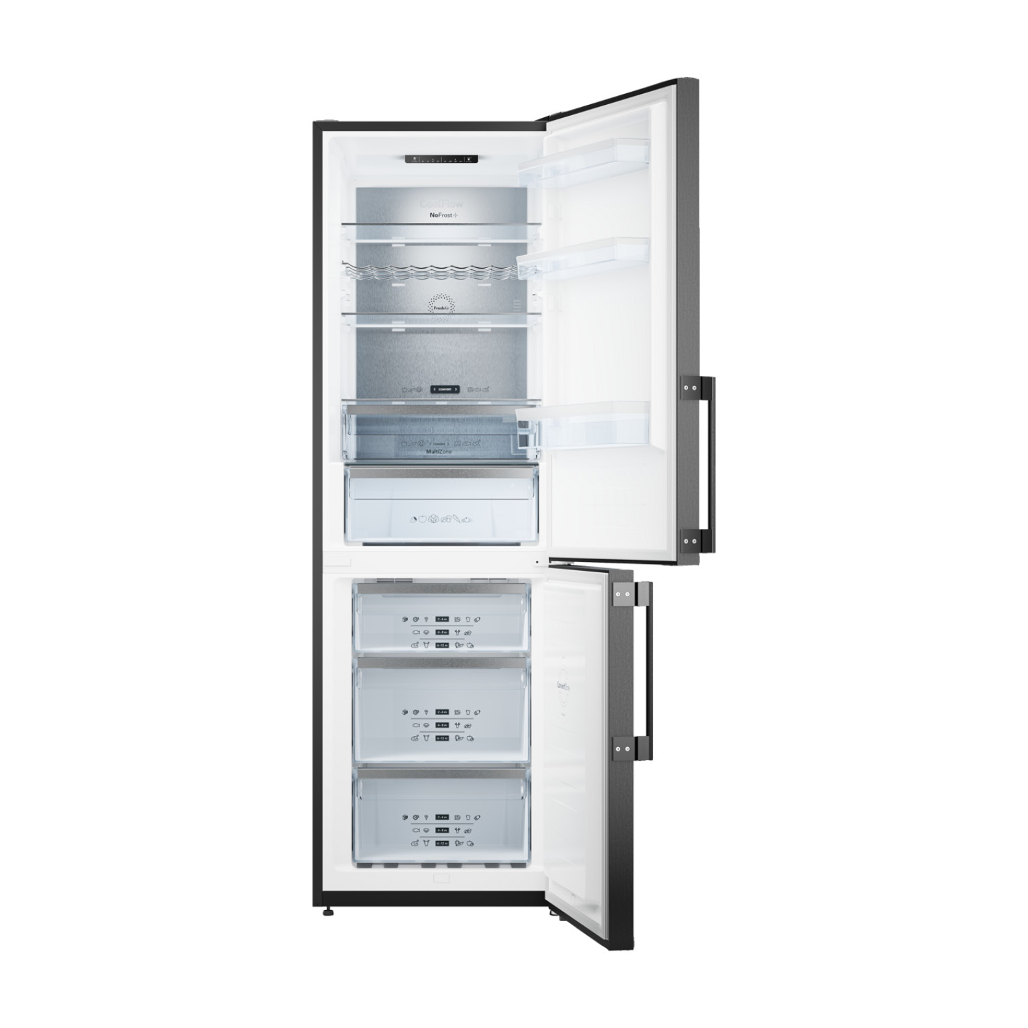 Chłodziarko-zamrażarka wolnostojąca w kolorze czarnej stali, NoFrost, inwerter, funkcja konwersji zamrażarki, wyświetlacz dotykowy, AdaptTech™, Cool Flow+ System, Super Cool, Super Freeze™, auto kontrola wilgotności, oświetlenie LED.