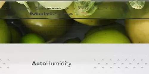 Automatyczna kontrola wilgotności utrzymuje wilgotność w szufladach na optymalnym poziomie. Specjalna membrana automatycznie otwiera się powyżej 90% wilgotności. Poniżej 90% membrana zamyka się i utrzymuje wilgotność wewnątrz szuflady. Jest to w pełni zautomatyzowany proces, który zapobiega wysychaniu lub gniciu owoców i warzyw.
