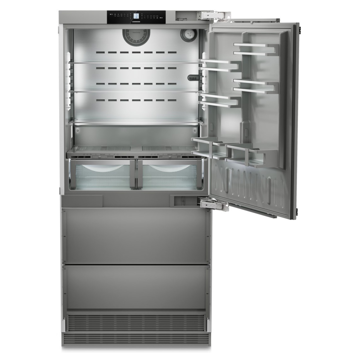 - FrostSafe: z całkowicie zamkniętymi szarymi szufladami