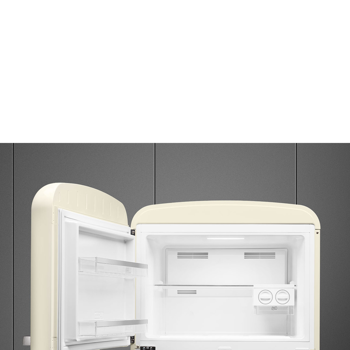Chłodziarko-zamrażarka wolnostojąca z serii 50’s Style w kolorze kremowym, kostkarka ręczna, oświetlenie LED, dwudrzwiowa, No Frost, podwójny system chłodzenia, 5-letnia gwarancja, h=192 cm.