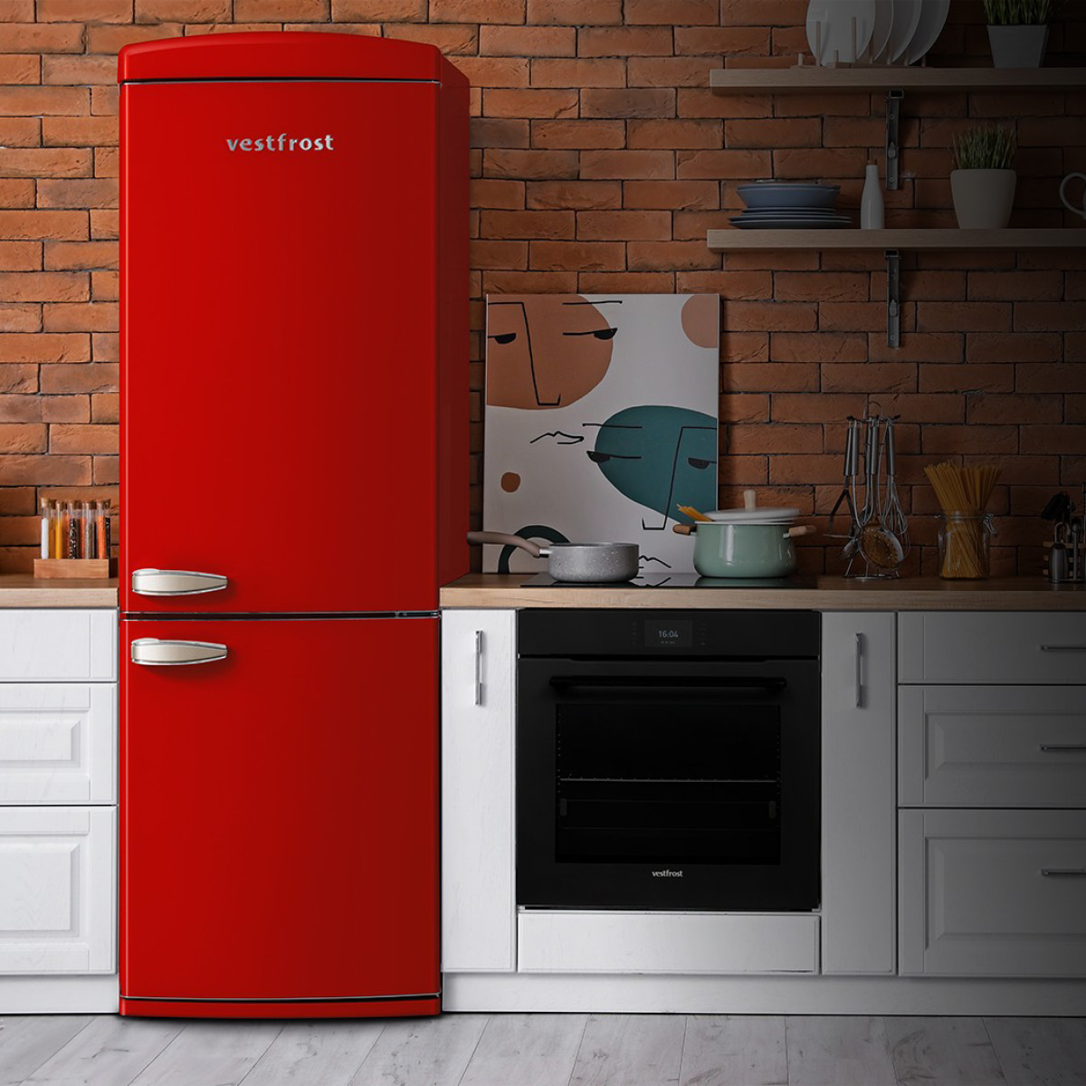 Kolekcja chłodziarko-zamrażarek retro marki Vestfrost to bogata paleta kolorystyczna, nowoczesne rozwiązania chłodnicze oraz wyszukane detale, nawiązujące do stylistyki lat 50-tych – zaokrąglone narożniki, stylizowane uchwyty i eleganckie wykończenie wnętrza.