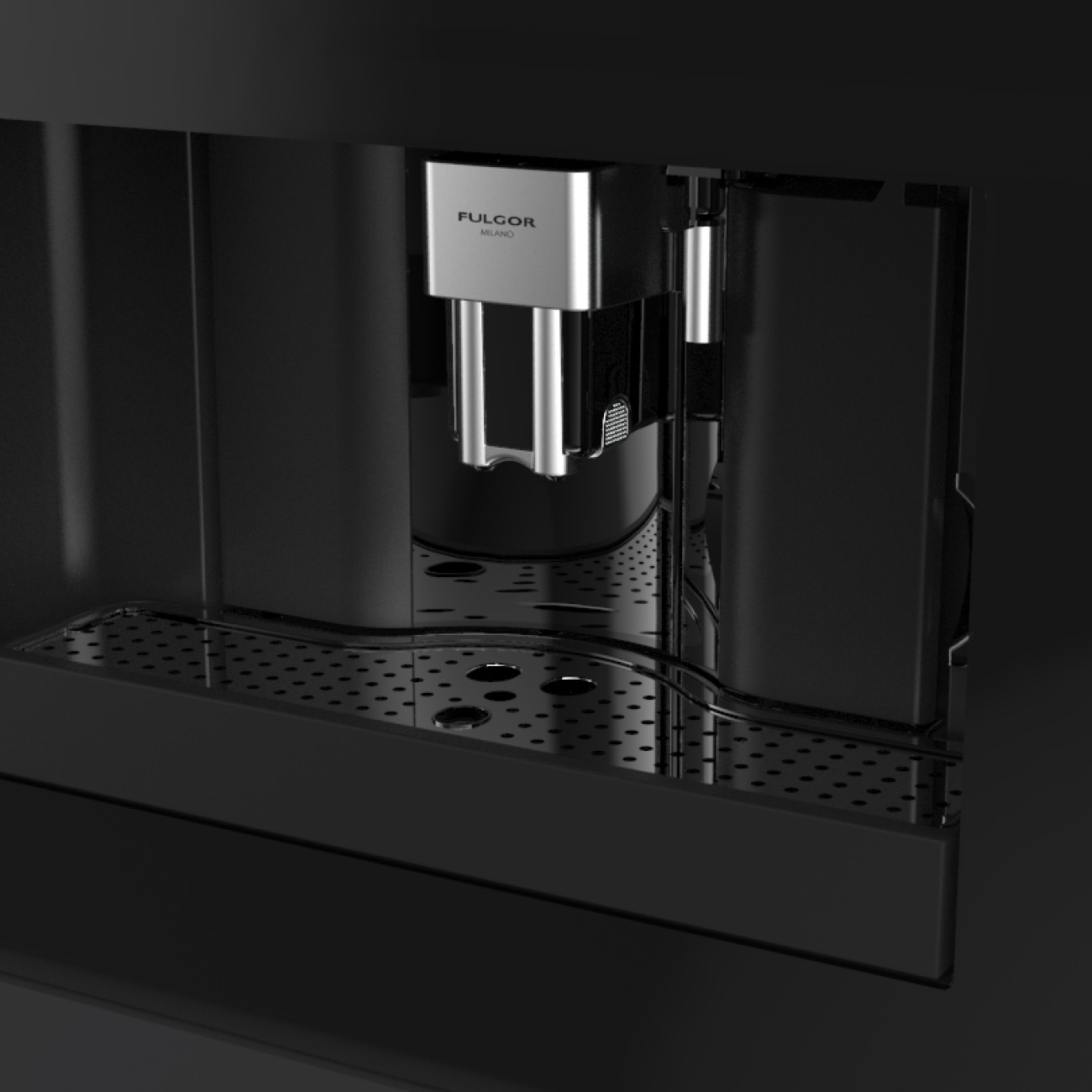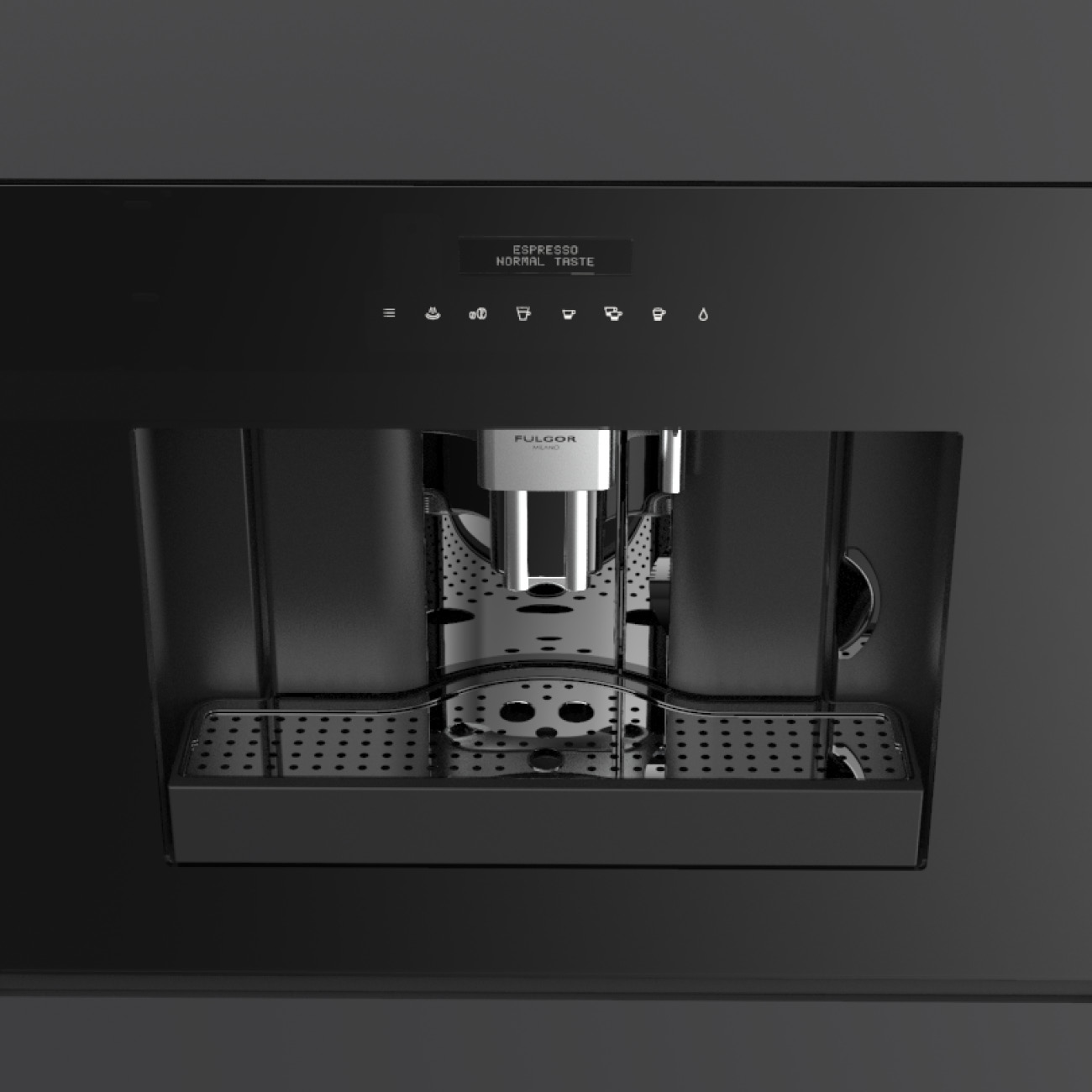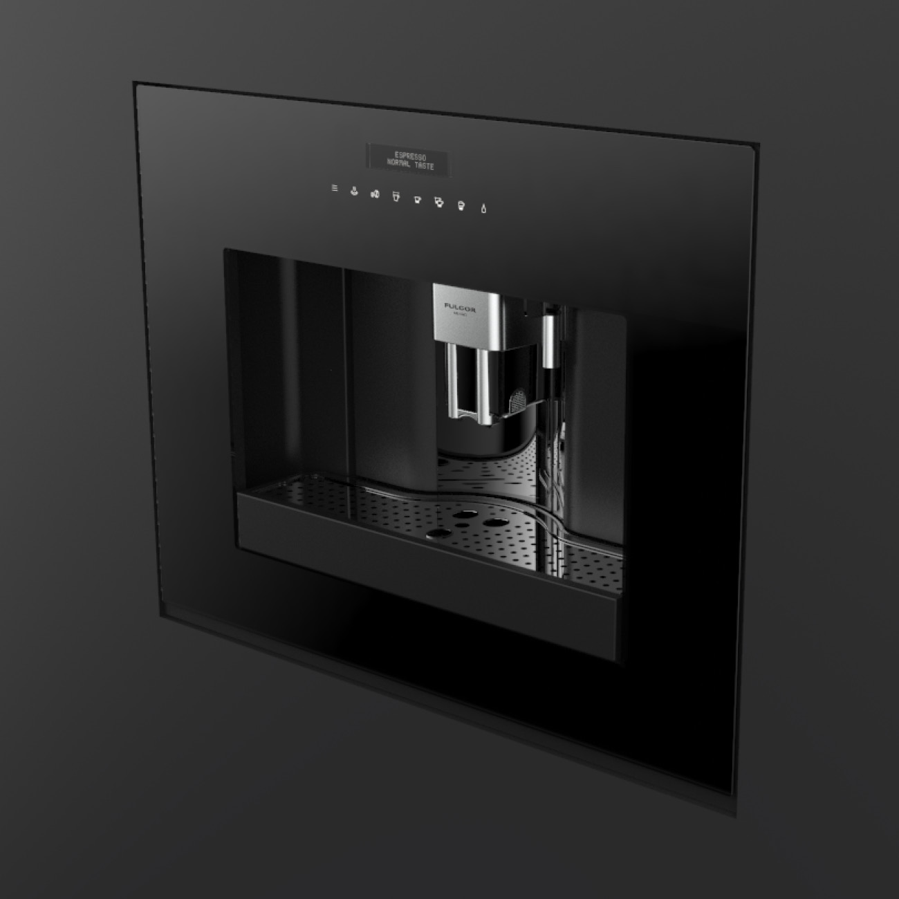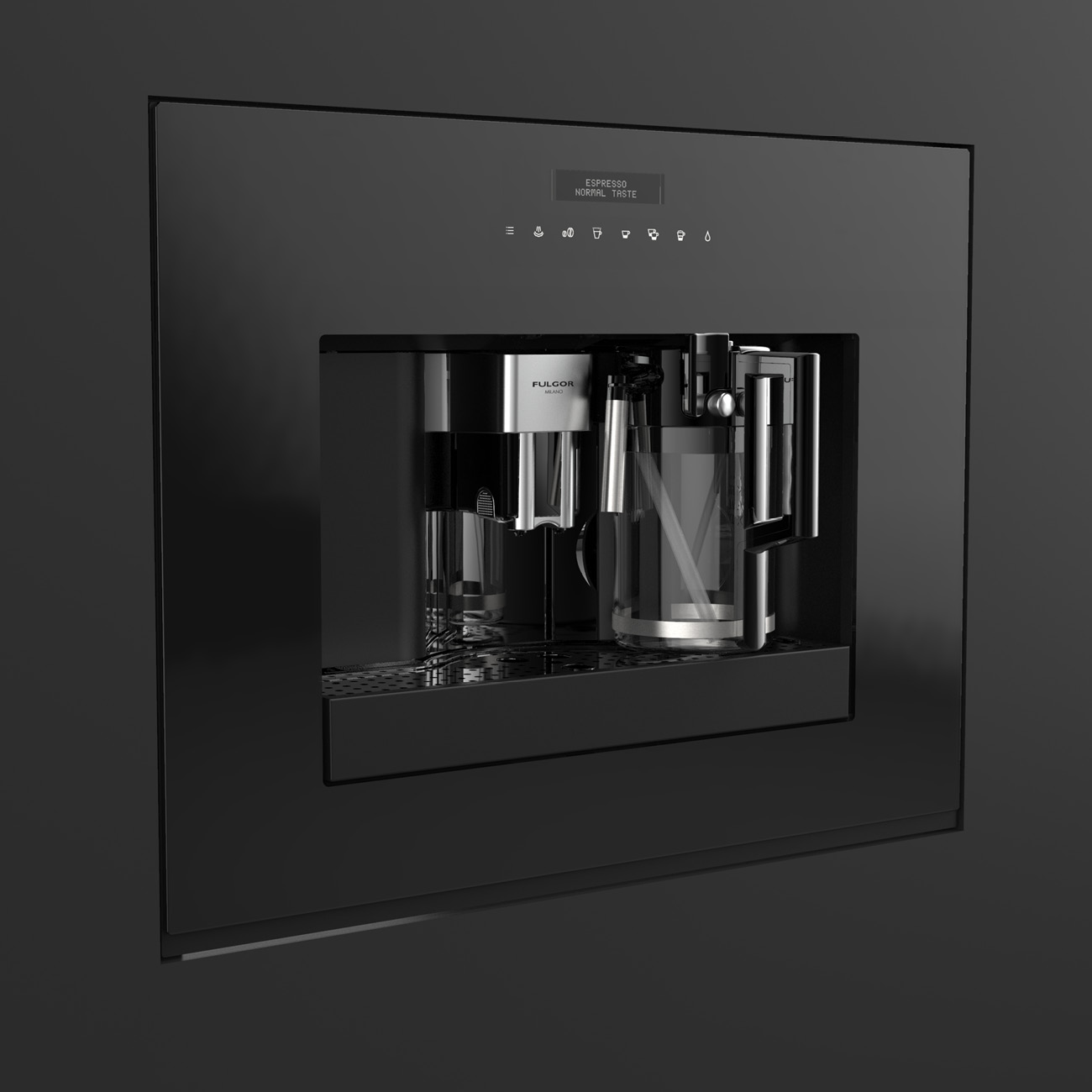 Ekspres do kawy do zabudowy Fulgor Milano FCM 4500 TF BK z serii Plano, w kolorze czarne szkło, wyświetlacz TFT, dotykowy panel sterowania, 15 bar.