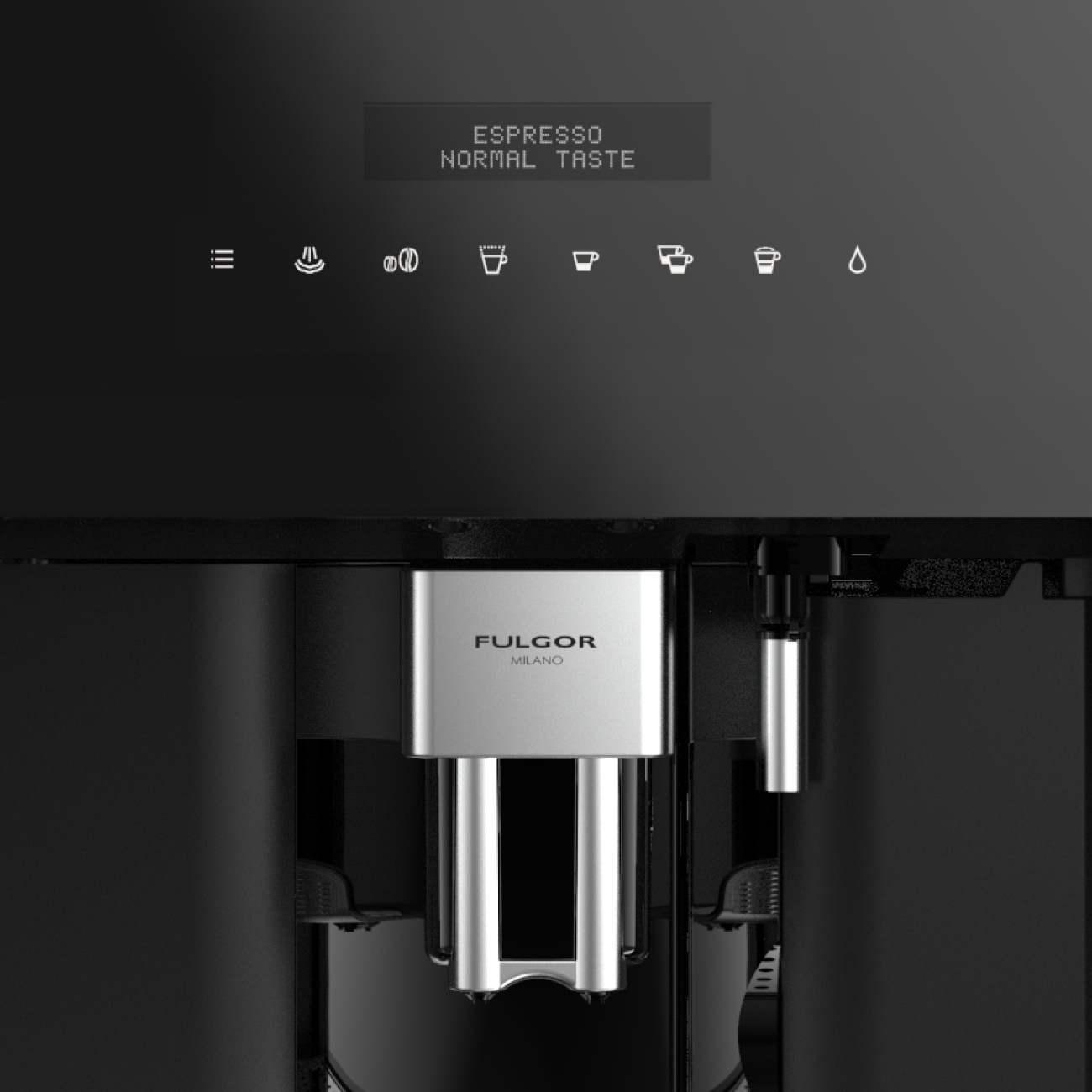 Dotykowy panel sterowania jest wyposażony w ikony umożliwiające intuicyjny wybór funkcji oraz kontrolki informujące o poziomie zapełnienia zbiorników. W posty sposób można sterować ekspresem za pomocą wyboru ikon funkcyjnych.