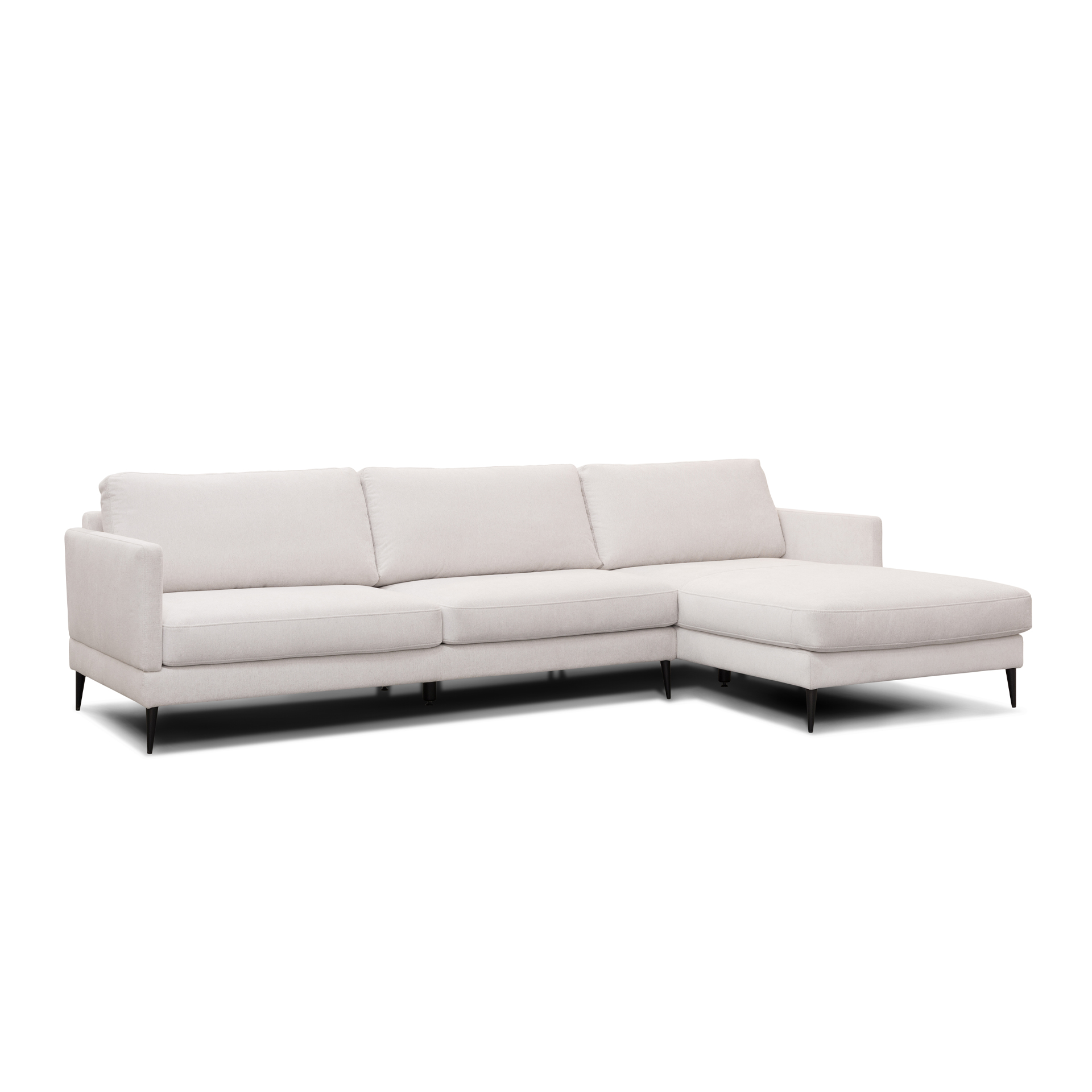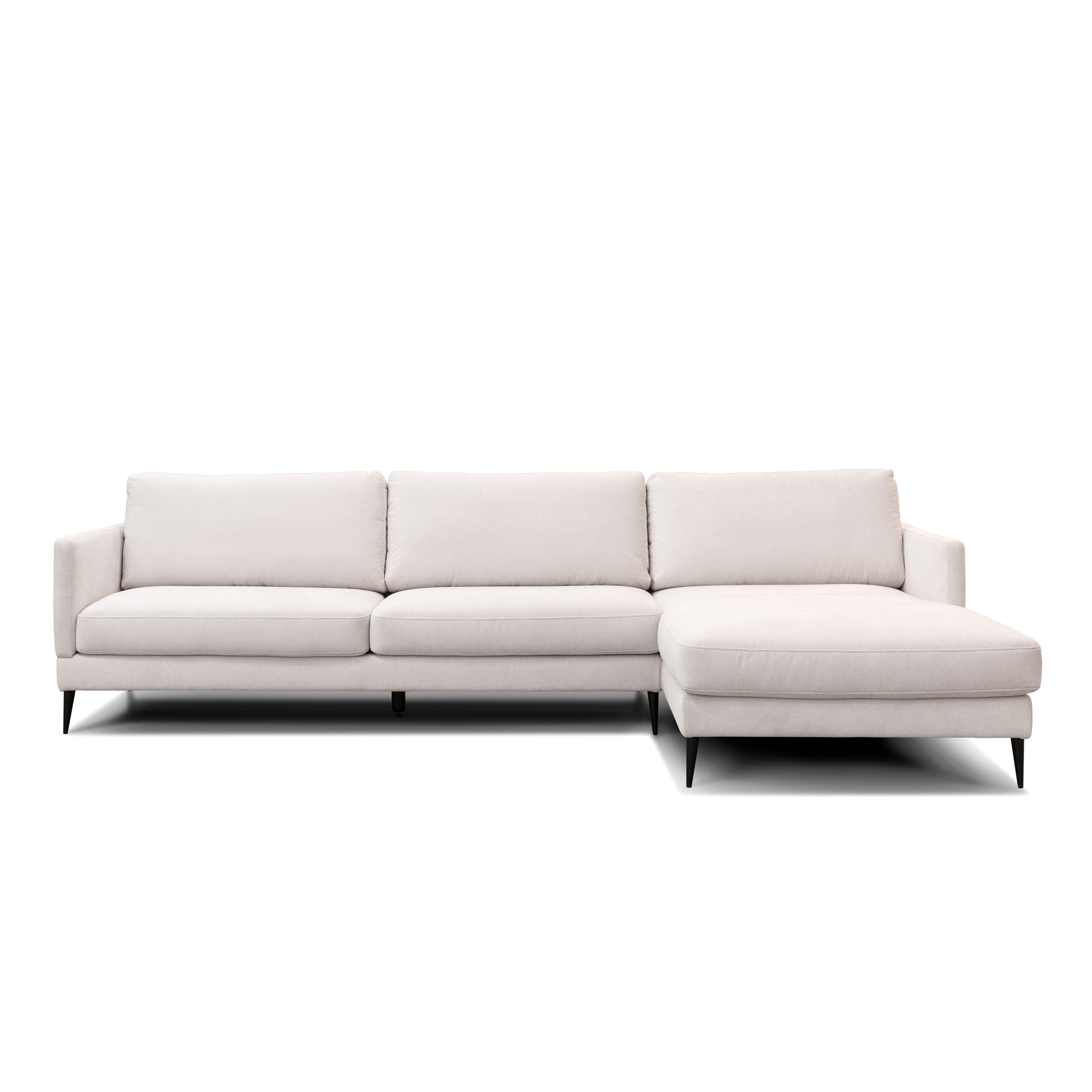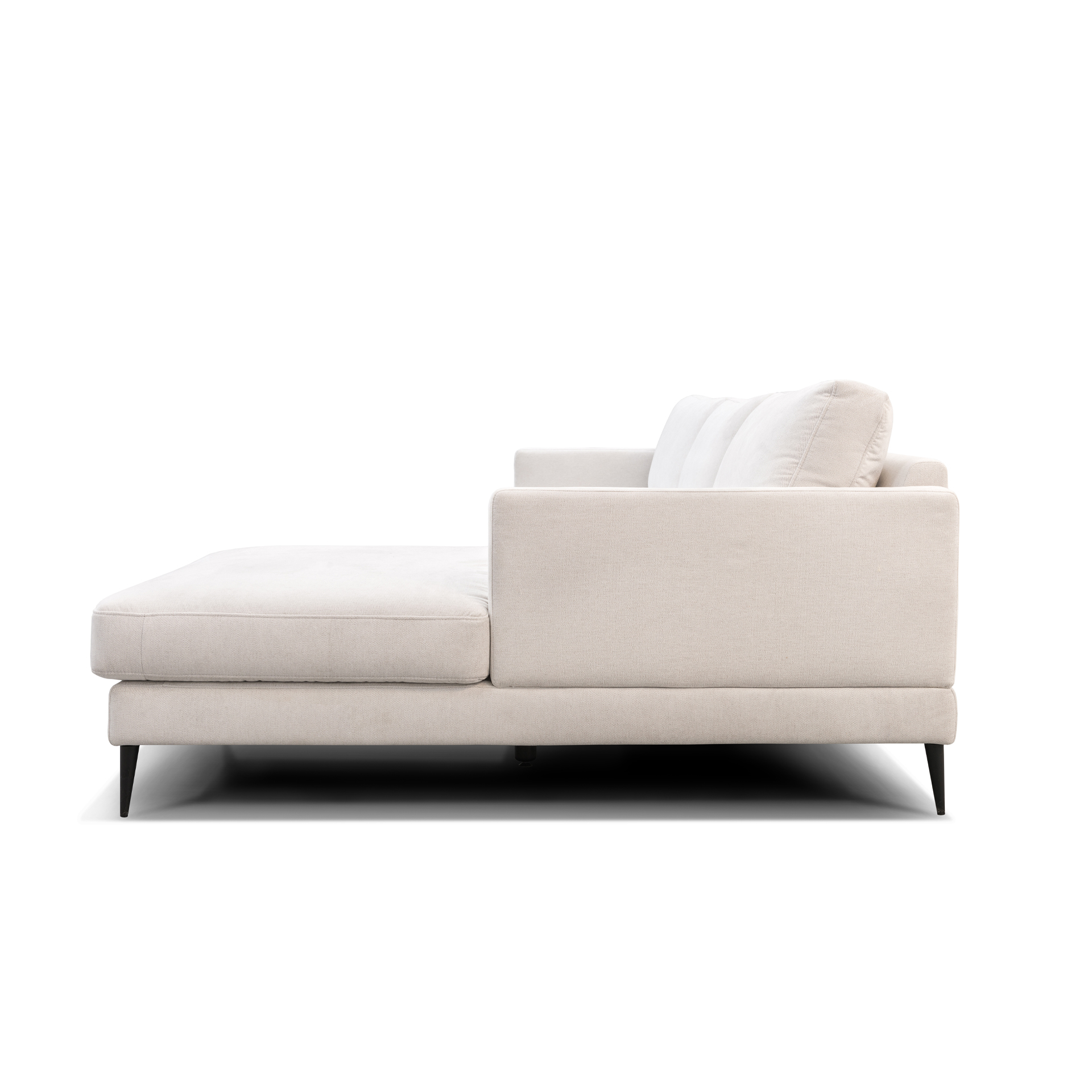 Narożnik z kolekcji Anton firmy Befame, dostępny w wersji lewej lub prawej z bogatym wyborem tkanin wykończeniowych i różnorodną kolorystyką nóżek.