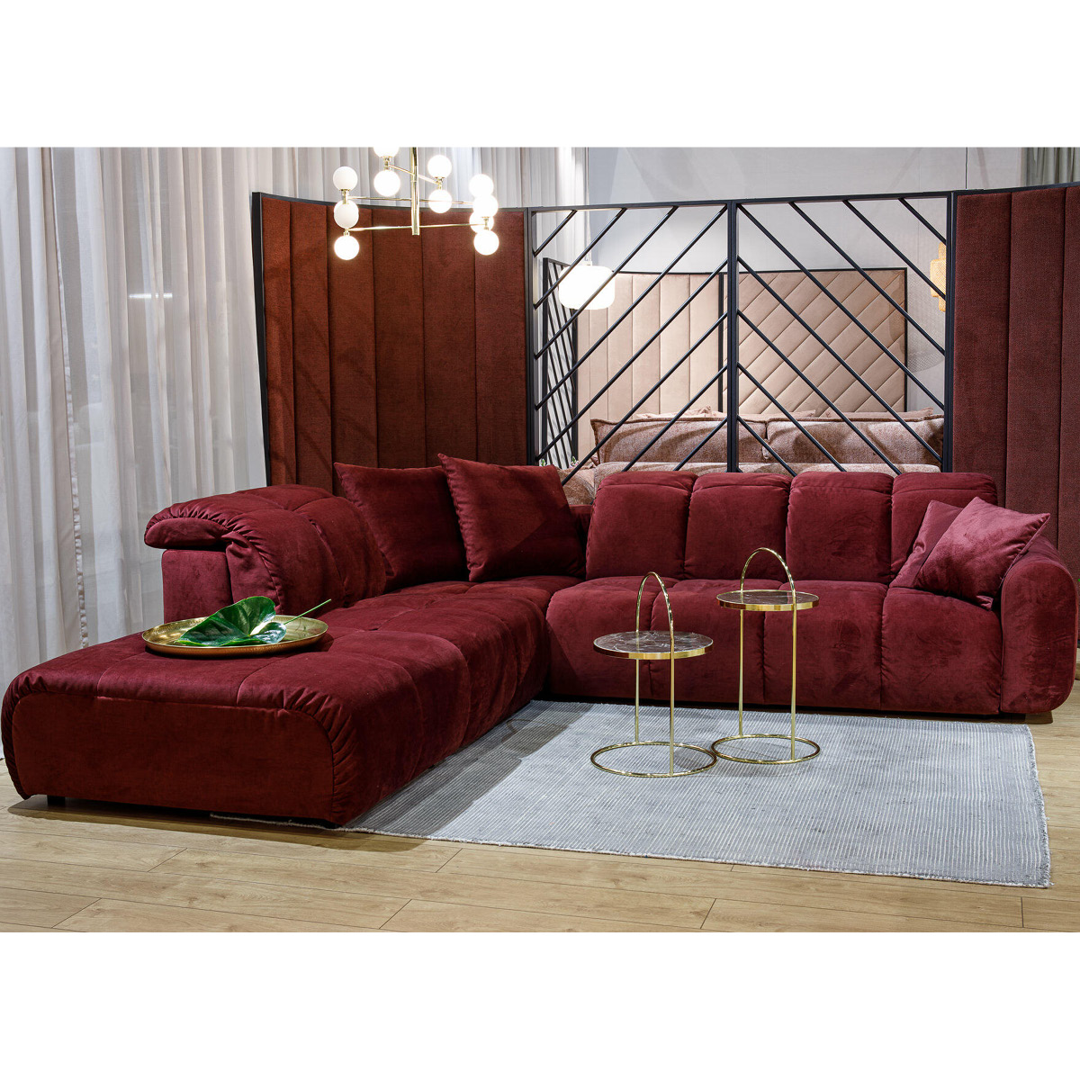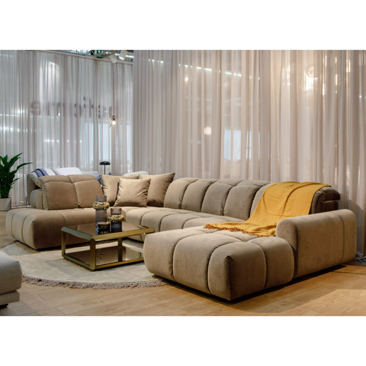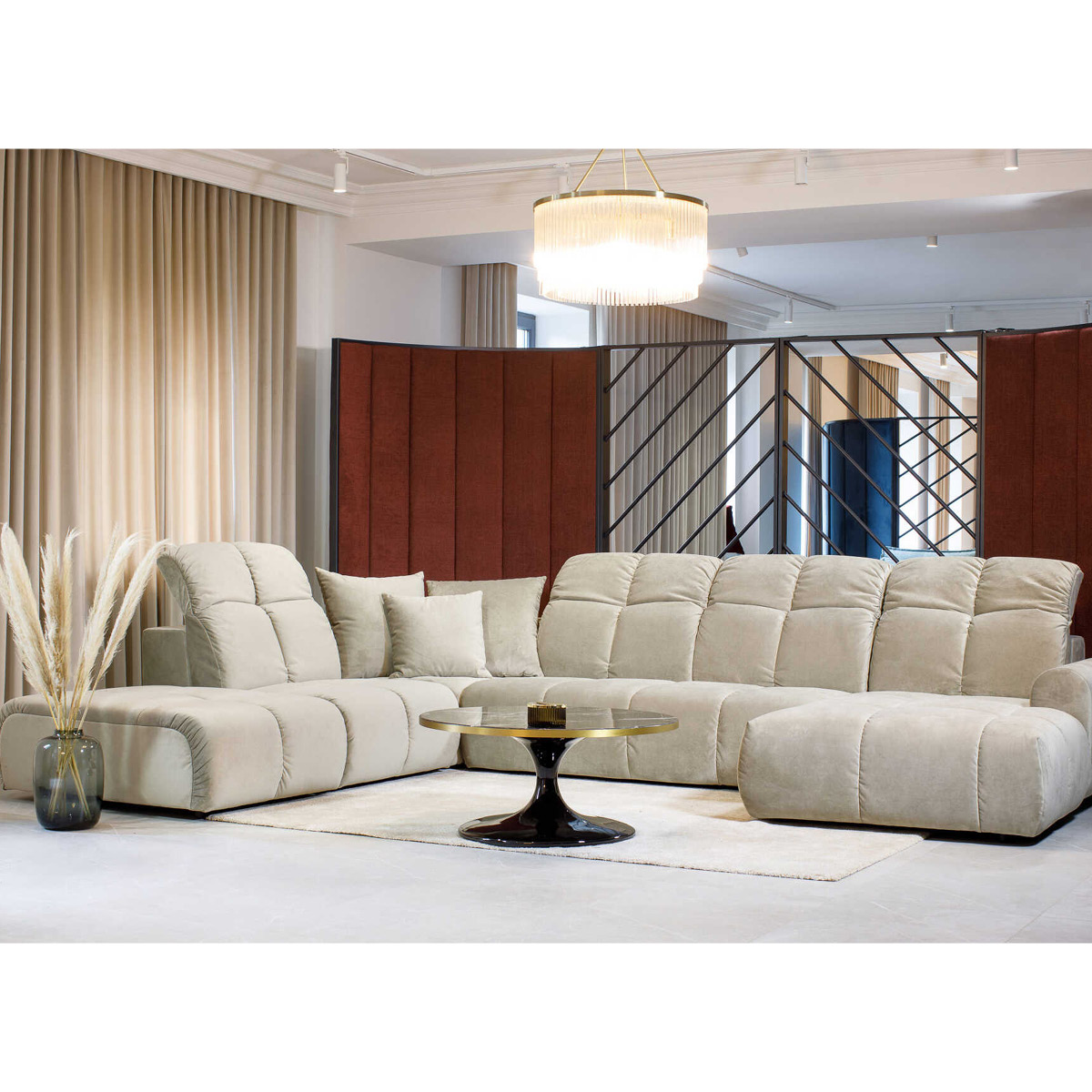 Mebel jest w całości tapicerowany (w tym tył), dzięki czemu można go usytuować na środku salonu.