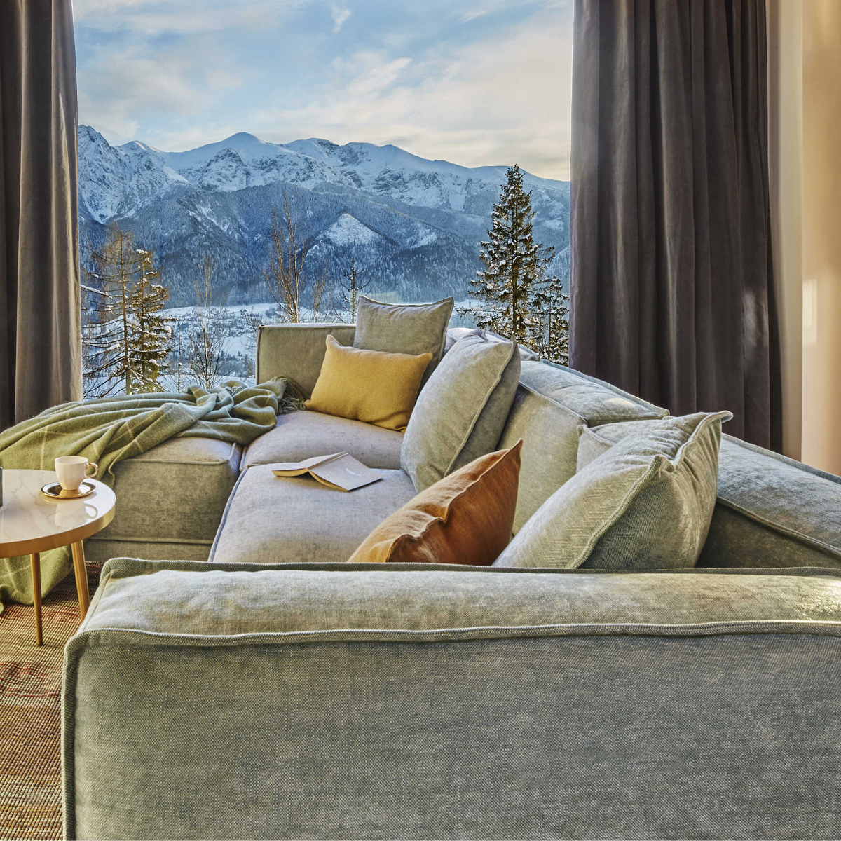 Laurent to młodszy brat Bellissy – tak jak ona stworzony z modułów, ma także miękkie i bardzo wygodne poduchy siedziskowe, co zawdzięcza specjalnemu połączeniu sprężyn falistych i pianki wysokoelastycznej. Wystarczy na niego spojrzeć, by móc wyobrazić sobie wygodę odpoczynku na tym meblu. Możesz usiąść wygodnie delektując się aromatyczną kawą i podziwiając widoki za oknem lub położyć się wygodnie pod ciepłym kocem, w towarzystwie ulubionej lektury czy filmu. Laurent jest nieco bardziej uniwersalny w stylu, dzięki czemu łatwiej dopasowuje się do wnętrz o różnym charakterze. Uroku dodaje mu ozdobna lamówka i luźne poduchy dekoracyjne.