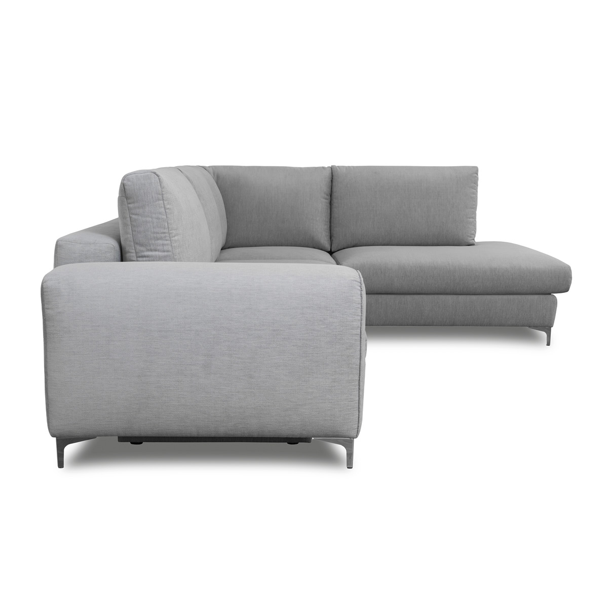 Narożnik z kolekcji Moon firmy Befame, rozkładany z funkcją spania i pojemnikiem na pościel (wersja lewa lub prawa).