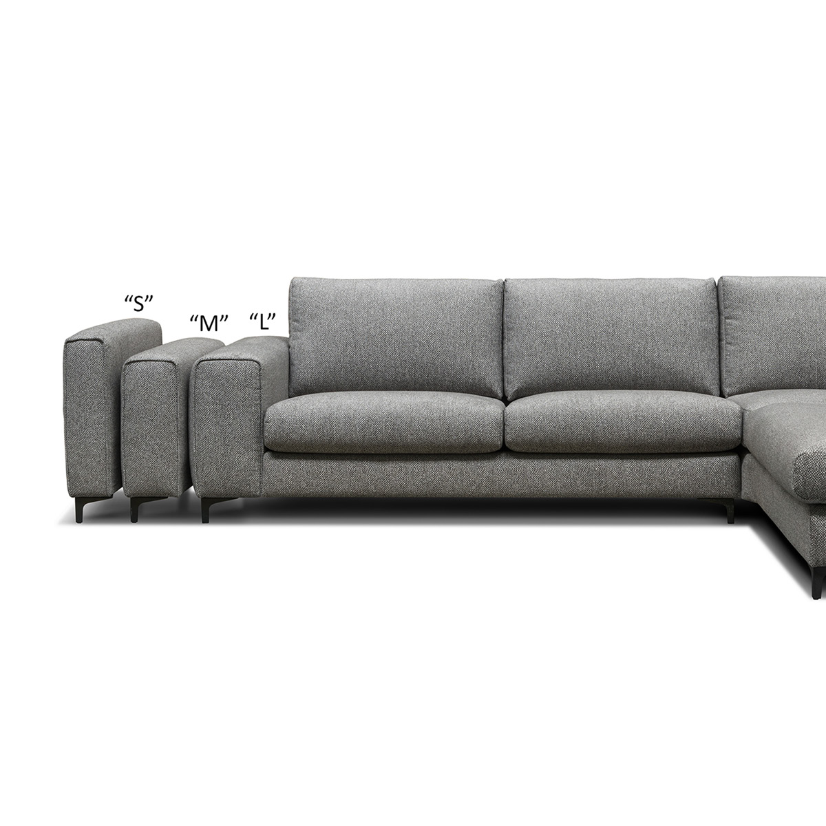 W uwagach do zamówienia prosimy o podanie wersji narożnika (Lewy / Prawy), nazwy wybranej tkaniny, wersji boków narożnika (L, M, S) oraz kolorystyki nóżek (chrom, czarny, mosiądz).