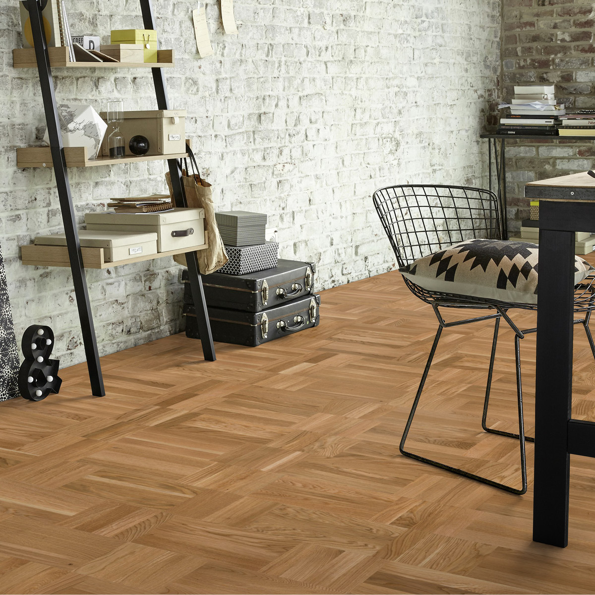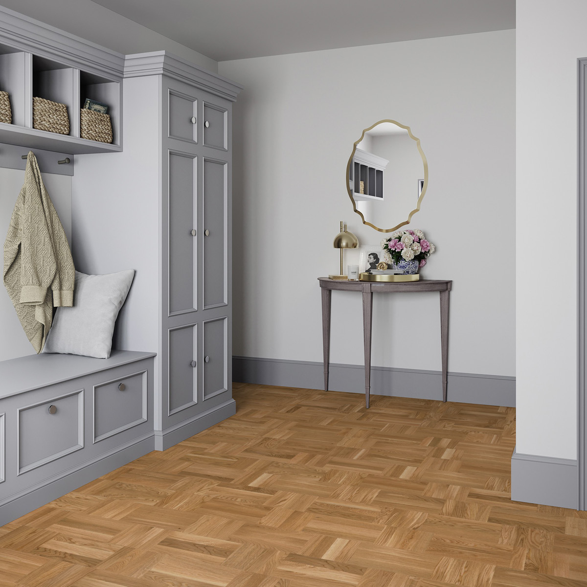 Panel drewniany firmy Tarkett z kolekcji NOBLE ze splotem koszykowym o grubości całkowitej 16 mm z zabezpieczeniem lakierem Proteco, 19 x 202,8 cm.