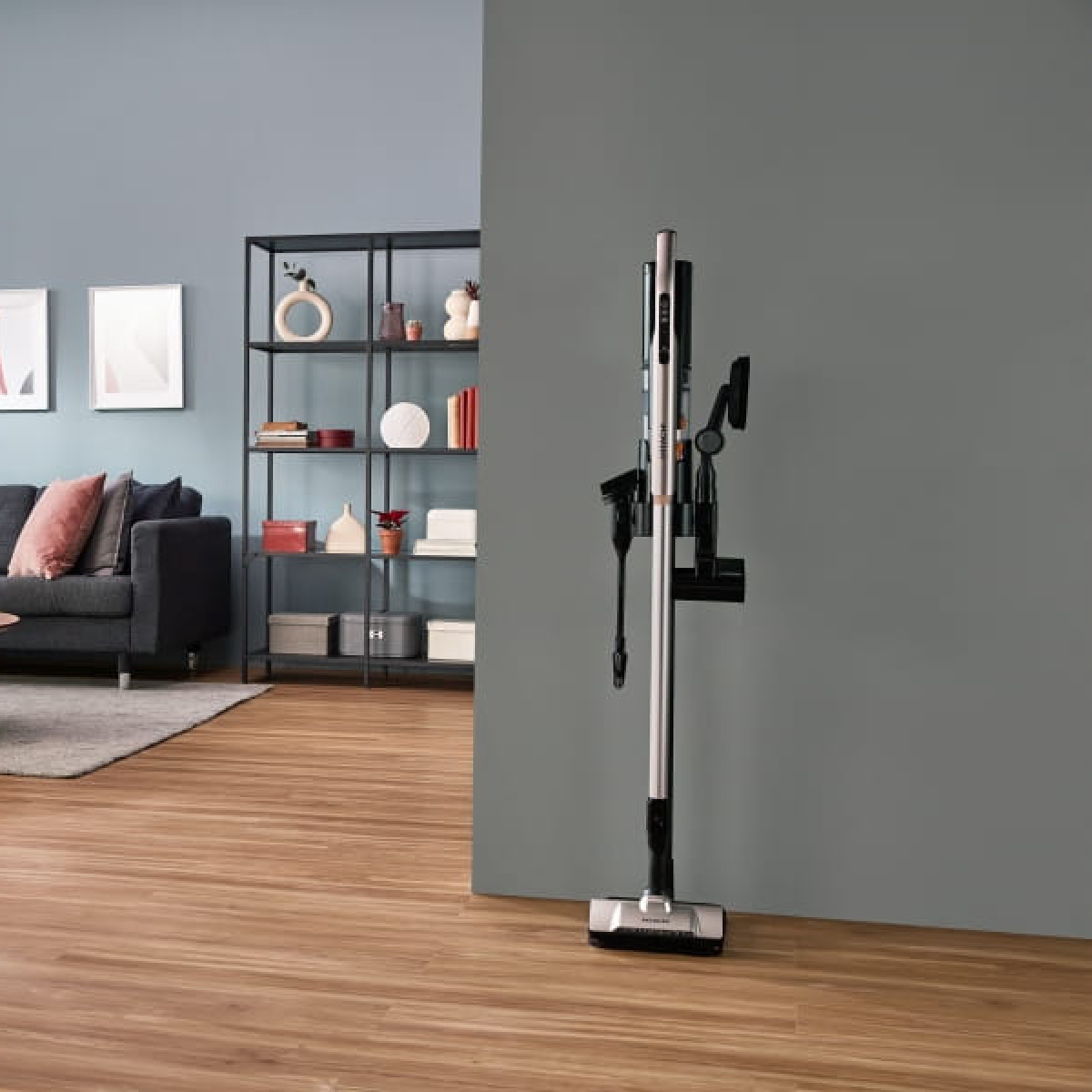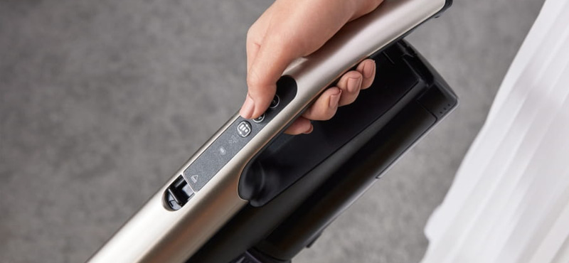 Dzięki możliwości przechowywania odkurzacza na platformie zamocowanej do ściany, zyskujesz elastyczność i łatwość w przechowywaniu. Odkurzacz jest zawsze w zasiegu ręki! Wystarczy jedno dotknięcie, aby zmienić odkurzacz na wersję pionową lub ręczną, dostosowując go do swoich potrzeb.