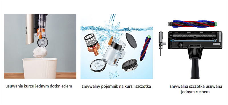 - łatwe wyjmowanie szczotki obrotowej do czyszczenia i mycia w wodzie,