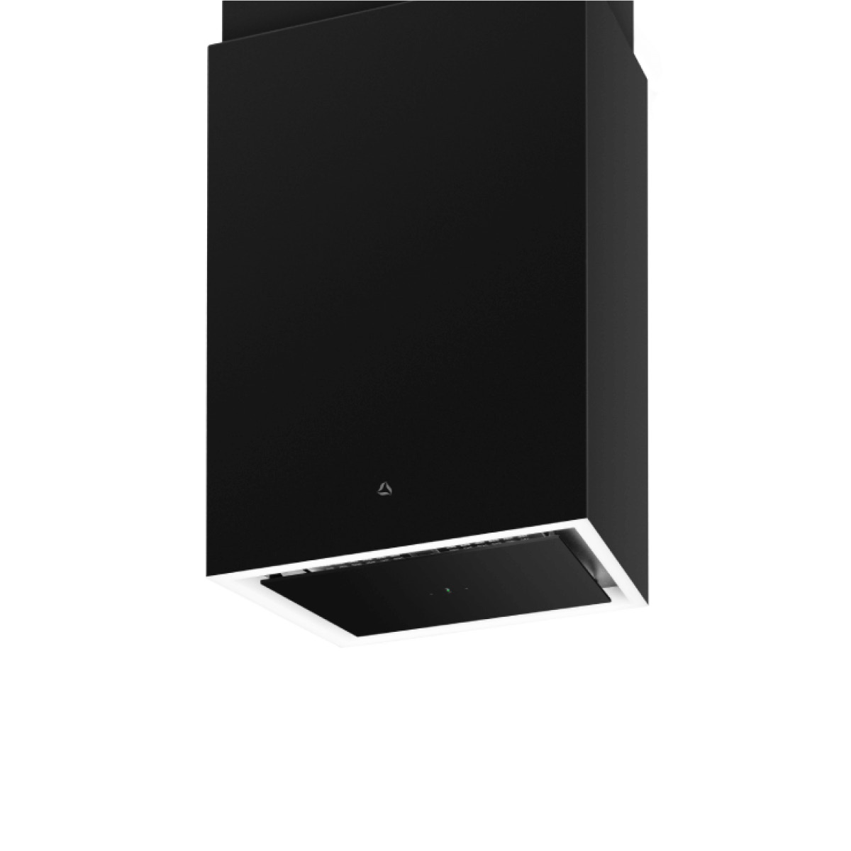 Okap wyspowy CUBE W w kolorze czarnym, oświetlenie: LED po obwodzie, Warm2Cold, GestureControl, możliwość połączenia z płytą indukcyjną, tryb pracy pochłaniacz, 40~57 (69) dB, 170~380 (680) m³/h, A+, 40×30 cm.