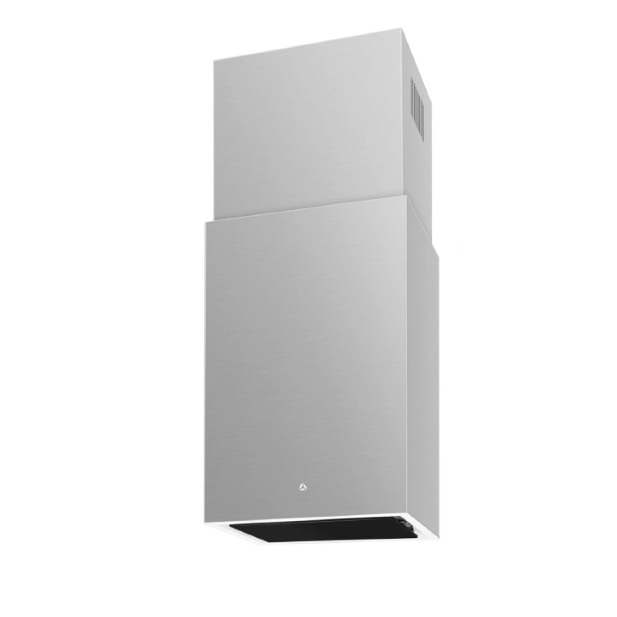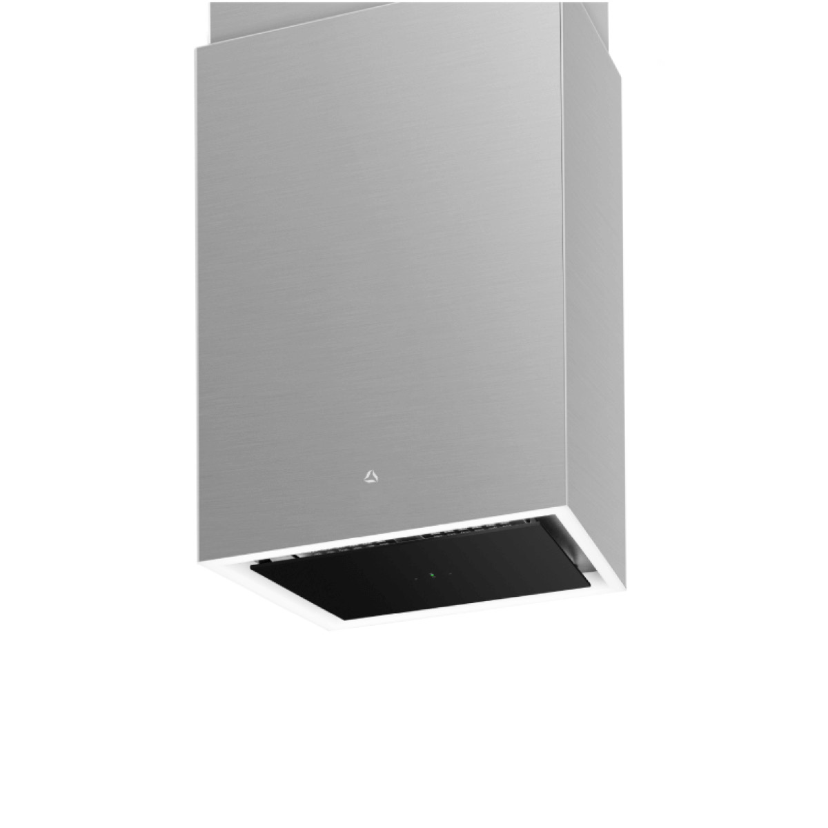 Okap wyspowy CUBE W w kolorze inox, oświetlenie: LED po obwodzie, Warm2Cold, GestureControl, możliwość połączenia z płytą indukcyjną, tryb pracy wyciąg, 40~57 (69) dB, 170~380 (680) m³/h, A+, 40×30 cm.