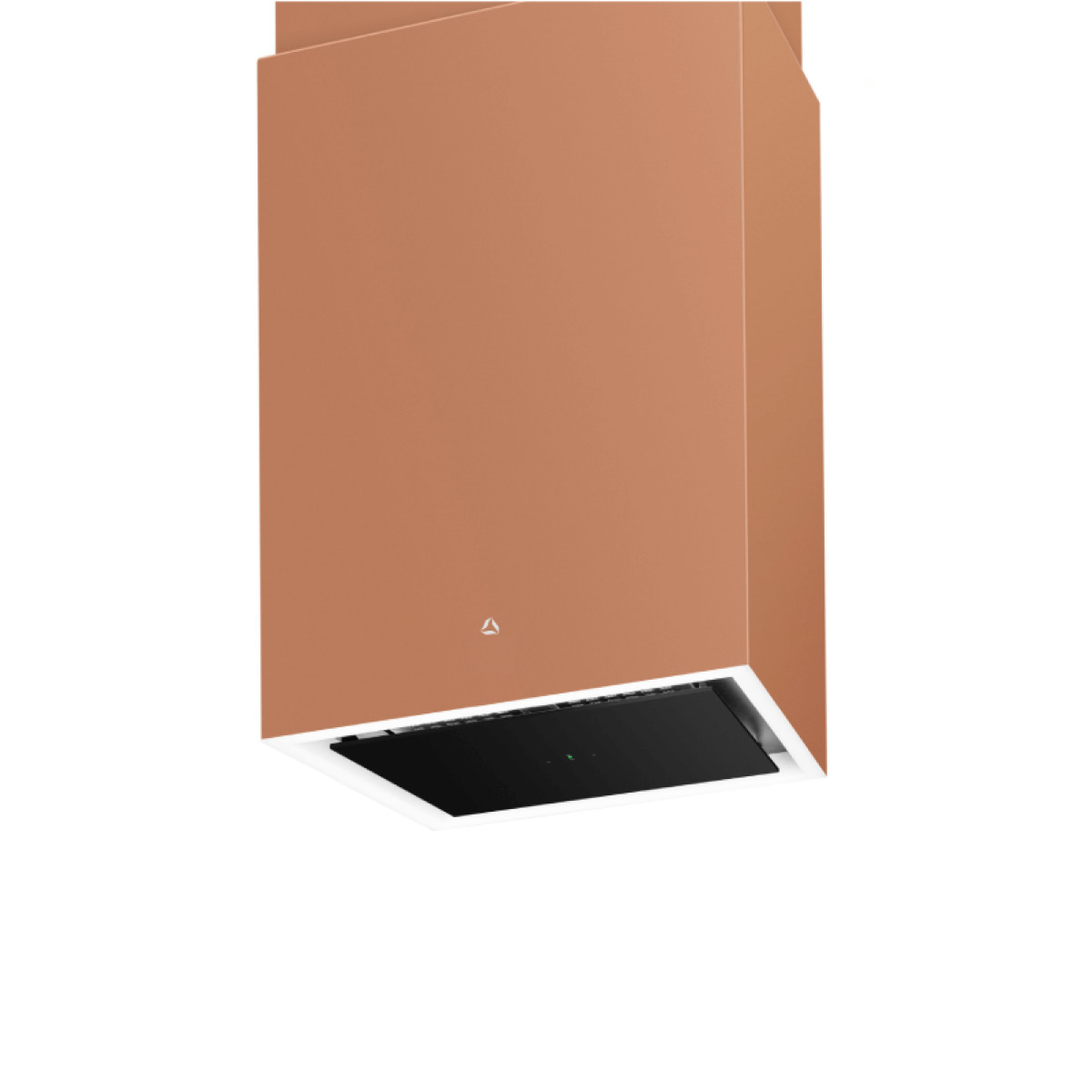 Okap wyspowy CUBE W w kolorze różowe złoto, oświetlenie: LED po obwodzie, Warm2Cold, GestureControl, możliwość połączenia z płytą indukcyjną, tryb pracy wyciąg, 40~57 (69) dB, 170~380 (680) m³/h, A+, 40×30 cm.