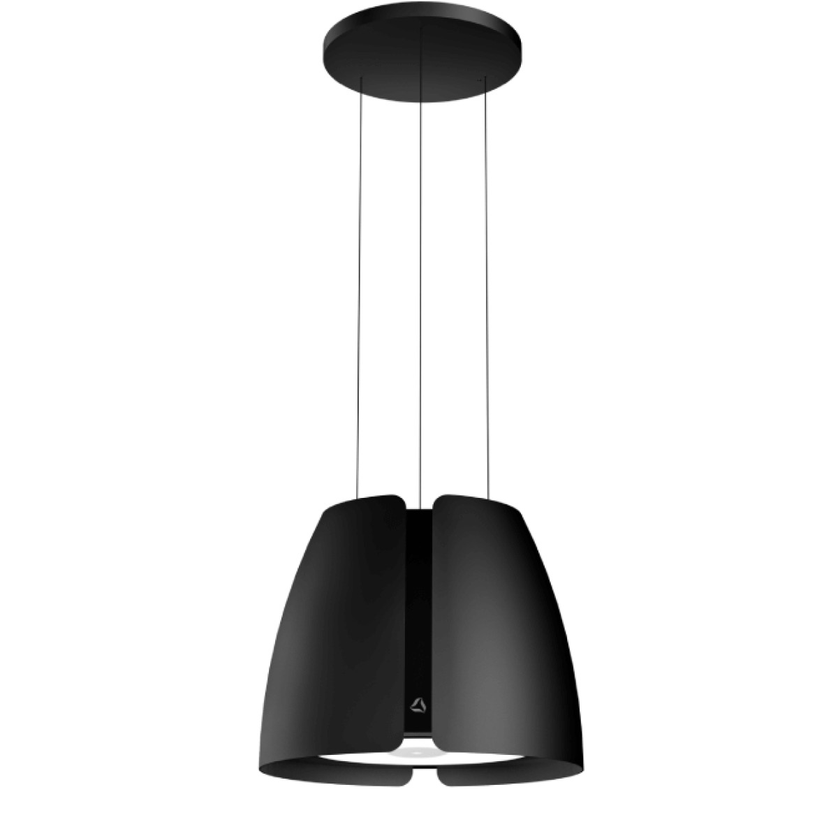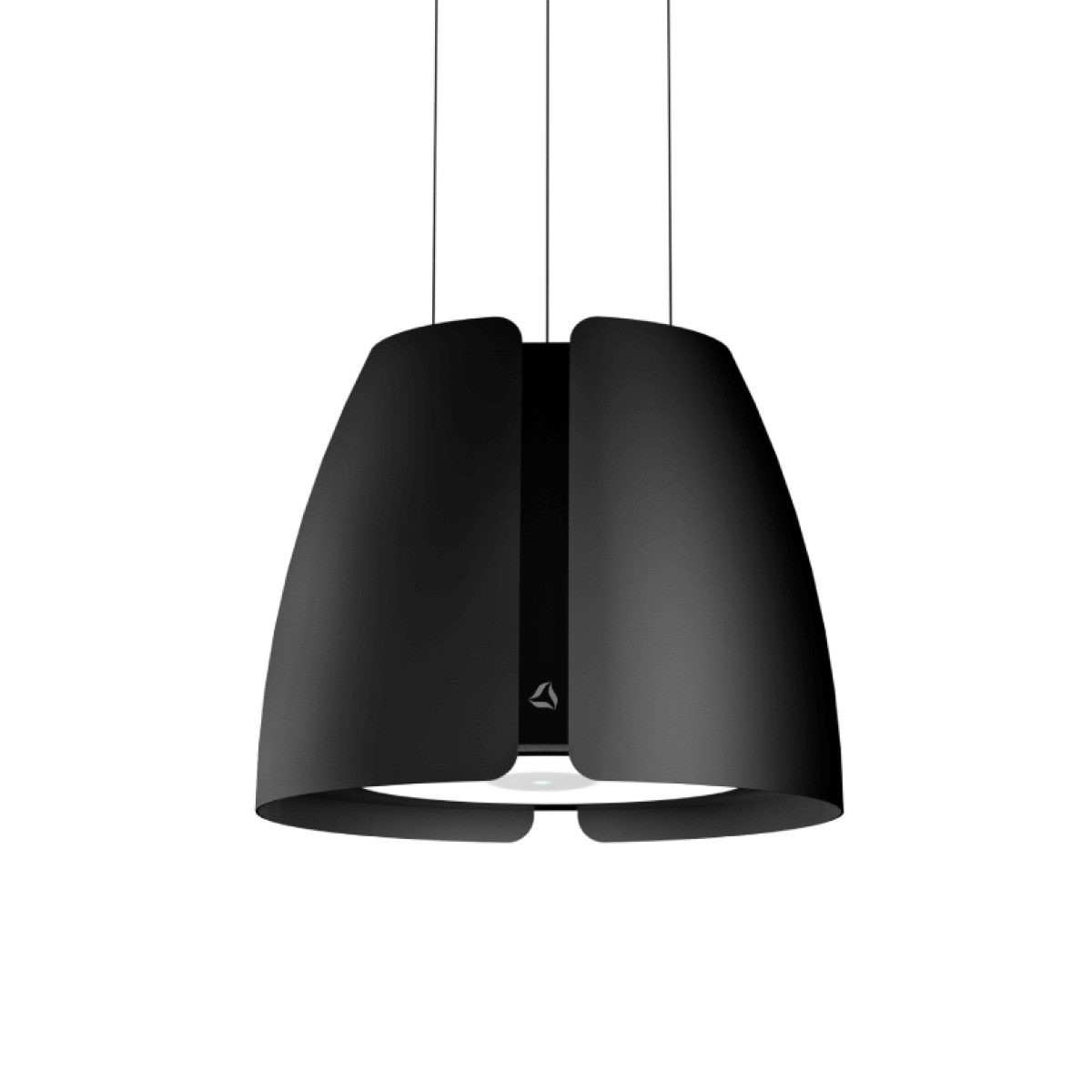 Okap wyspowy MISS W w kolorze czarny mat, oświetlenie: LED plafon, Warm2Cold, GestureControl, tryb pracy pochłaniacz, 41~60 (68) dB, 105~295 (475) m³/h, A, ø 50 cm.