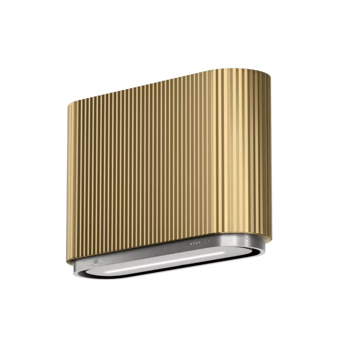 Okap przyścienny MONO w kolorze złotym, oświetlenie: LED pasek, Warm2Cold, GestureControl, możliwość połączenia z płytą indukcyjną, tryb pracy pochłaniacz, 40~58 (69) dB, 200~400 (650) m³/h, A+, 60 cm.