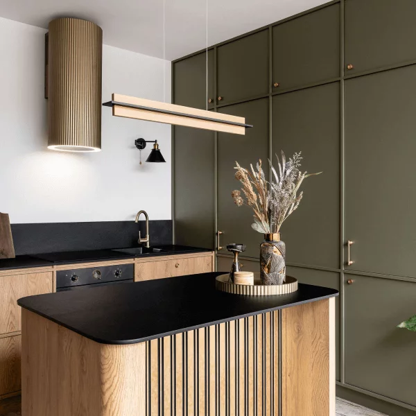 Geometryczna forma okapu doskonale wpisuje się w nowoczesną wizję wnętrza. Elegancka obudowa posiada aż 84 harmonijne zgięcia, które cieszą oko każdego miłośnika designu. To okap, który wygląda w kuchni jak minimalistyczna rzeźba!