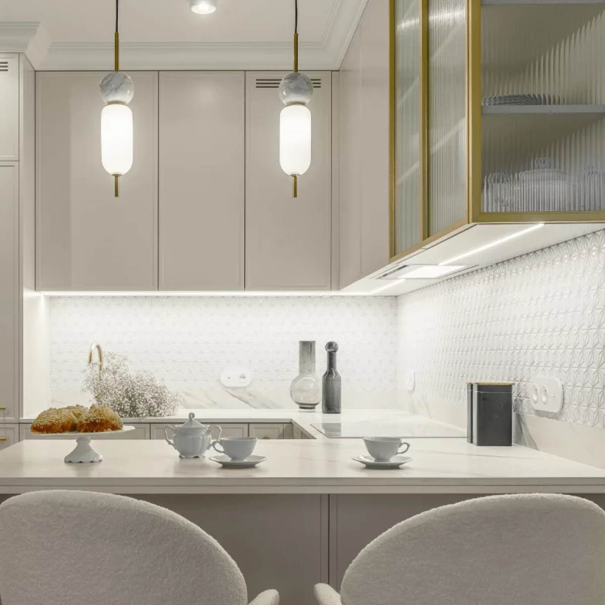 Pasek LED skutecznie oświetla płytę kuchenną, tworząc optymalne warunki do gotowania. Możliwość regulacji barwy światła od ciepłej do zimnej pozwala dostosować oświetlenie do innych źródeł światła w pomieszczeniu lub do panującej atmosfery. Przyjemna, ciepła barwa światła, zbliżona do naturalnego światła słonecznego, nie obciąża wzroku i korzystnie wpływa na nastrój. Natomiast chłodne światło podkreśla urodę i charakter Twojej kuchni.