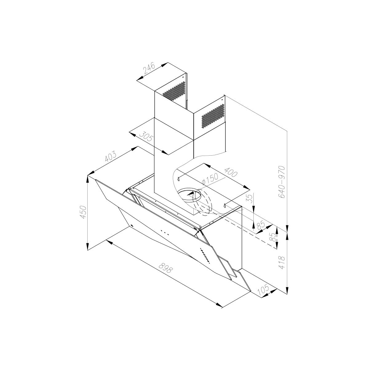 - Średnica wylotu powietrza: 15 cm