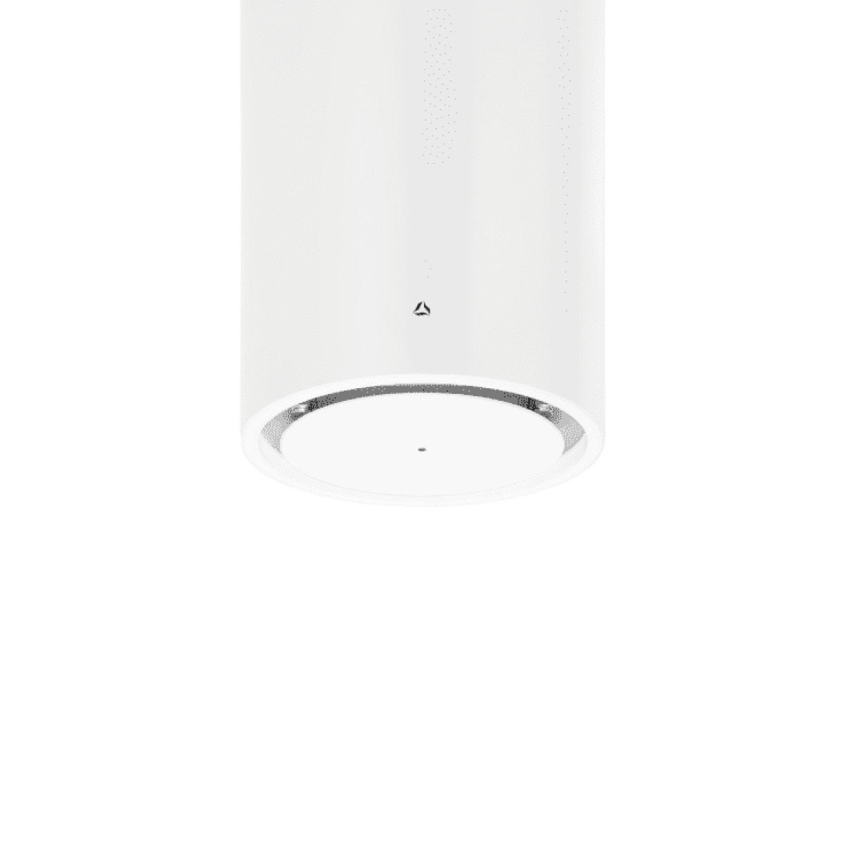 Okap wyspowy TUBUS W w kolorze białym, oświetlenie: LED po obwodzie, Warm2Cold, GestureControl, możliwość połączenia z płytą indukcyjną, tryb pracy wyciąg, 39~56 (69) dB, 160~370 (670) m³/h, A+, ∅ 38 cm.