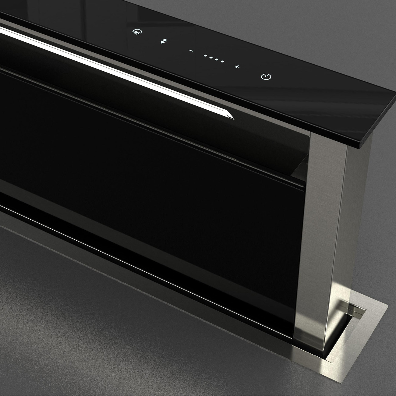 Model ten to dynamicznie wysuwany i chowany okap kuchenny typu downdraft, który znika za płytą grzewczą. Specjalny mechanizm wnosi konstrukcję okapu lub chowa ją po zakończonej pracy. Dzięki takiemu rozwiązaniu, przestrzeń wokół płyty grzewczej pozostaje wolna, zapewniając więcej miejsca na blacie.