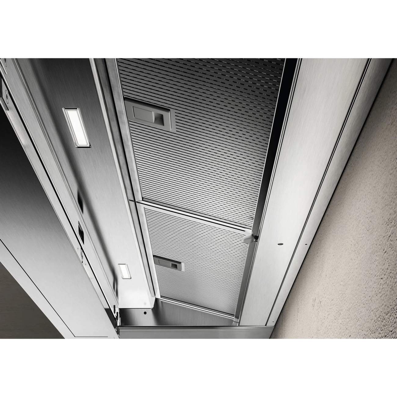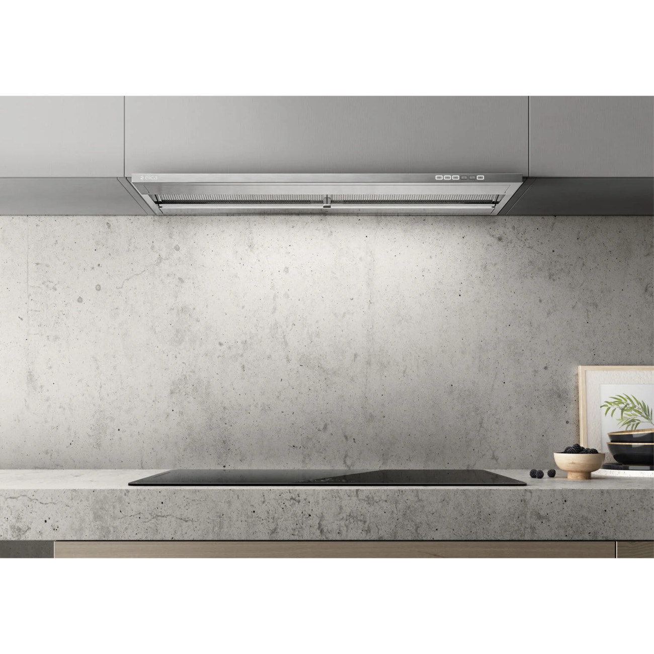 Okap do zabudowy, eliminujący problem kondensacji pary poprzez zastosowanie wszechstronnych rozwiązań zarówno mechanicznych, jak i elektronicznych, wersja wyciąg, 700 m³/h, 120 cm.