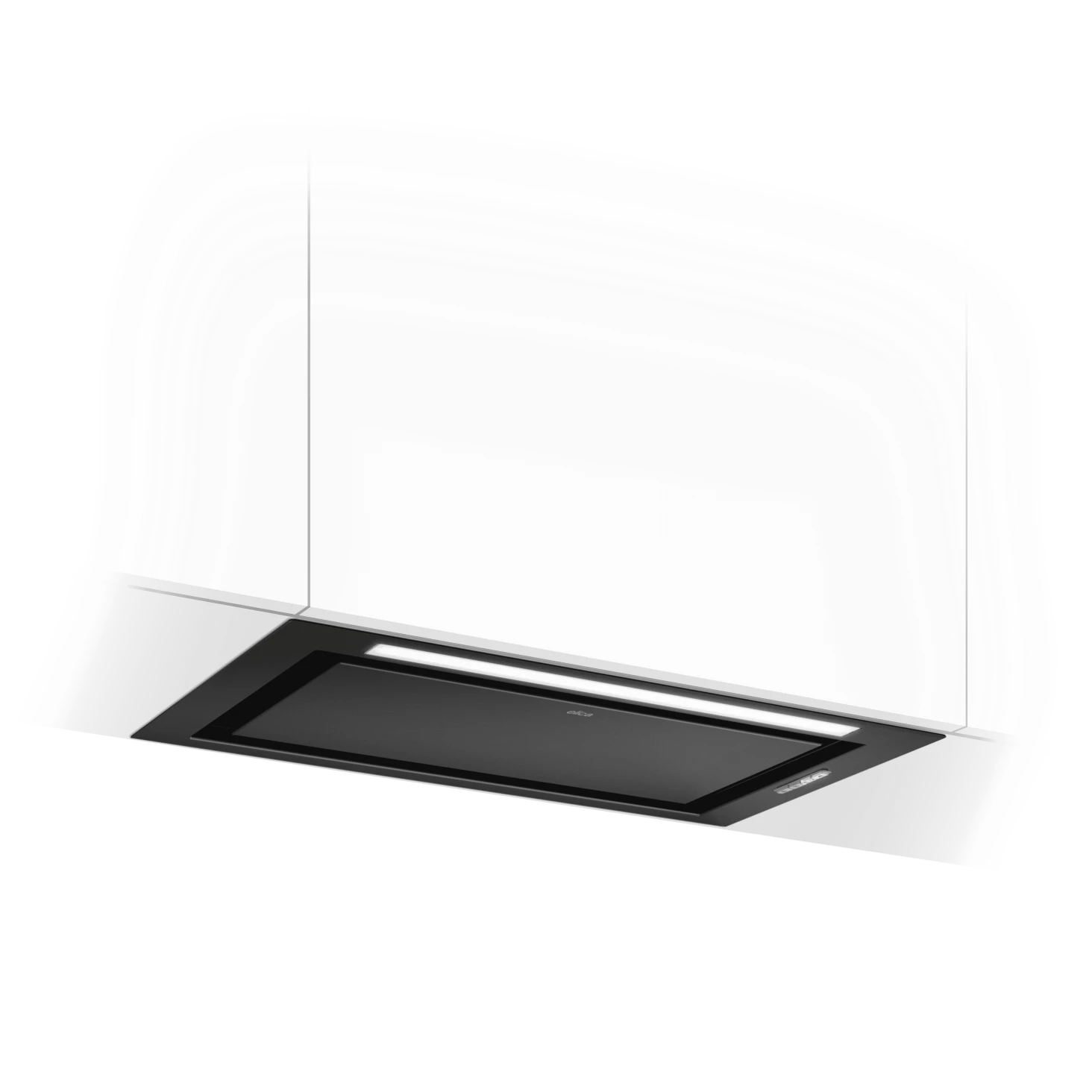 Okap podszafkowy w kolorze czarnym, który dzięki prostej formie staje się integralną częścią przestrzeni kuchennej. Zasysanie obwodowe gwarantuje maksymalne pochłanianie oparów kuchennych, wersja wyciąg, 395 m³/h, 52 cm.