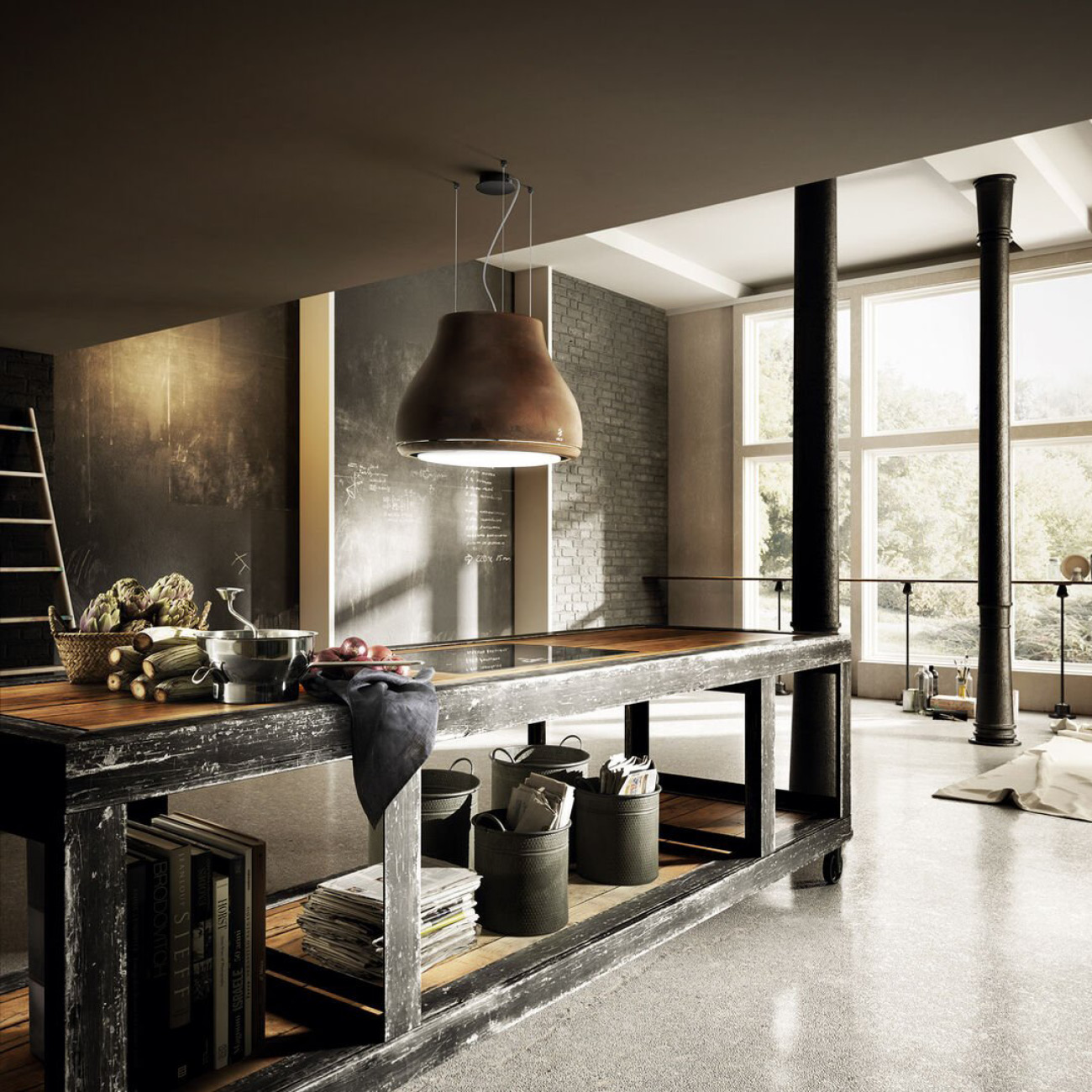 Shining to elegancki okap wyspowy w kształcie lampy, który wzbogaca każdą przestrzeń kuchenną. Model wykonany jest z metalu i dostępny w trzech wersjach: z efektem typu peltrox, rdzawym i żeliwnym. Wykończenia ozdobione są wstawkami z czarnej lub szczotkowanej stali, z dbałością o każdy szczegół. Okap idealnie odnajdzie się w klasycznych, jak i nowoczesnych przestrzeniach kuchennych. Shining jest wyposażony w oświetlenie LED, które idealnie rozświetla płytę i jej otoczenie, sprawiając, że funkcja oświetleniowa jest jedną z charakterystycznych cech tego produktu. Dzięki czujnikom najnowszej technologii, okap rozpoznaje ilość oparów i automatycznie dostosowuje prędkość zasysania w stosunku do ich nagromadzenia w przestrzeni kuchennej. Sterowanie urządzeniem odbywa się manualnie oraz za pomocą pilota. Technologia Comfort Silence zapewnia cichą pracę urządzenia nawet przy maksymalnej prędkości działania. Okap wyposażony jest także w filtr węglowy z funkcją regeneracji. Urządzenie jest łatwe w montażu, jak i czyszczeniu. Okap można instalować już na wysokości 65 cm nad płytą gazową i 50 cm nad płytą indukcyjną.