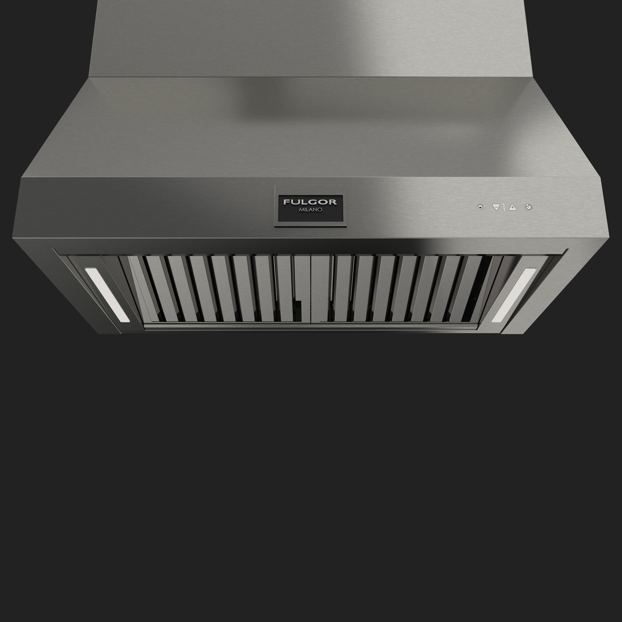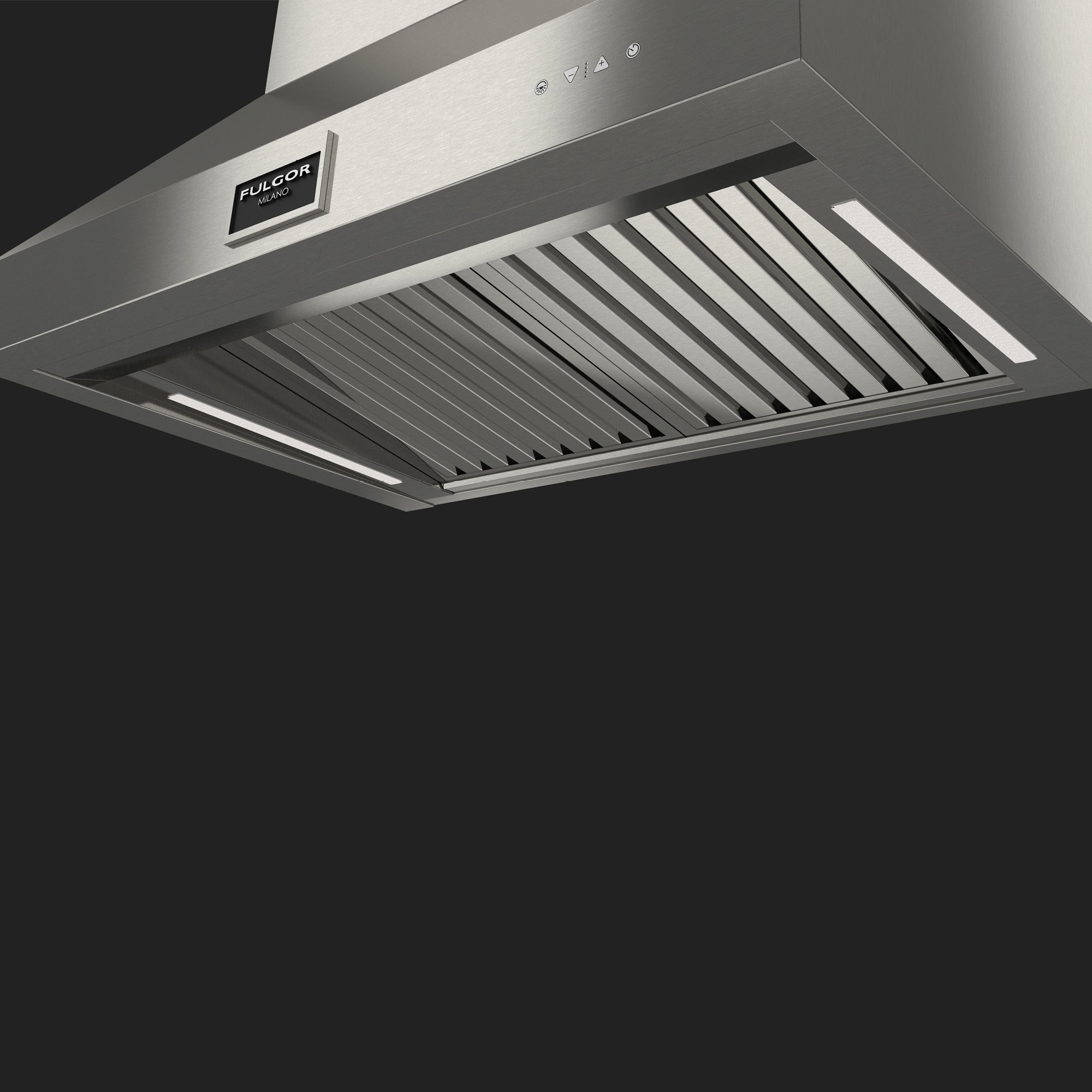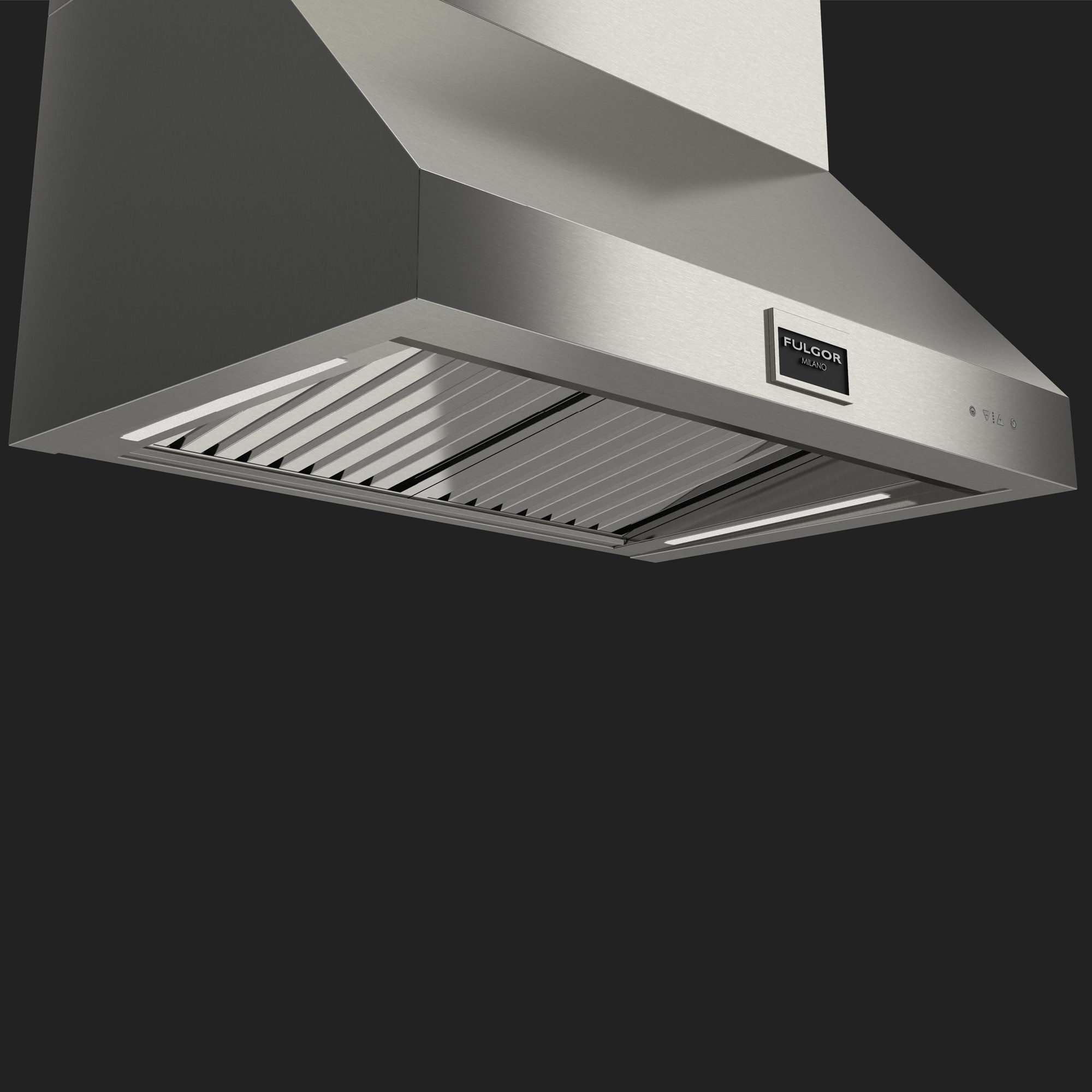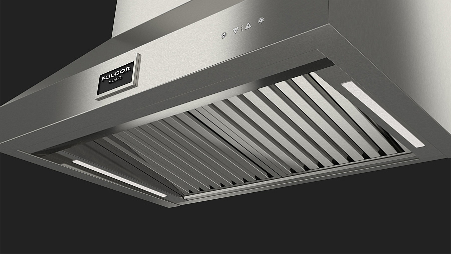 Okap został zaprojektowany i w całości wykonany we Włoszech. Kilka elementów jego designu jest charakterystyczne dla linii urządzeń Fulgor Milano Professional.