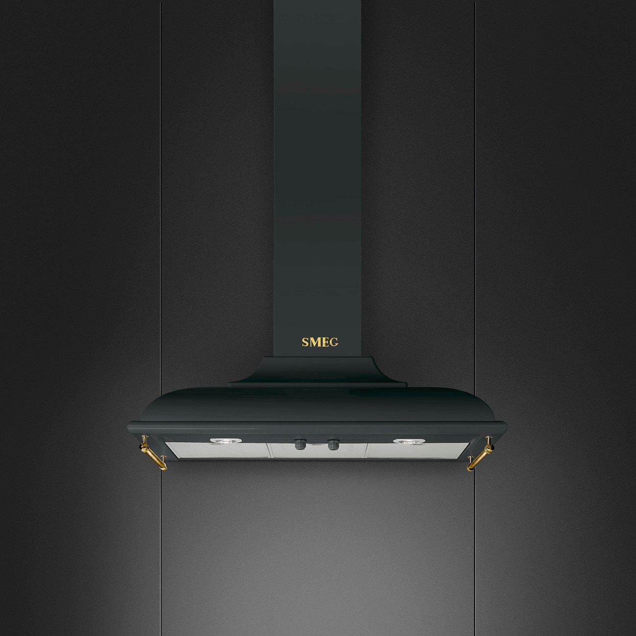Okap przyścienny Smeg z serii Cortina w kolorze antracytowym, A, 3 tryby pracy + tryb boost, oświetlenie LED, z 5-letnią gwarancją producenta, 90 cm.