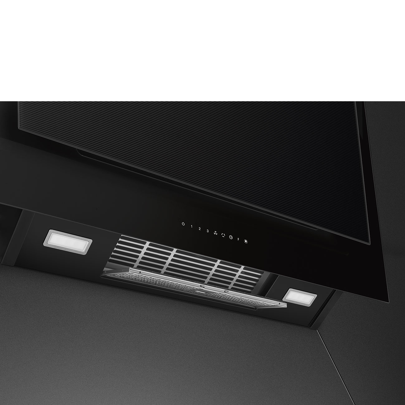 Okap przyścienny Smeg z serii Linea w kolorze czarnym, sterowanie dotykowe, oświetlenie LED, z 5-letnią gwarancją producenta, 90 cm.